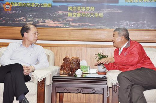 為以民間倡導推動金門、廈門經濟自由示範區,台灣競爭力論壇執行長謝明輝昨日拜會金門縣長李沃士,提出規劃今年六月份將在金門大學舉辦推動金門經濟自由示範區論壇、七月份將在廈門舉辦廈門經濟自由示範區論壇構想,希望邀請專家學者共襄盛舉外,也希望能邀請金門縣長、廈門市長對等作專題演講。 謝明輝指出,金門雖小,卻是一顆鑽石,只待雕磨就能變成閃閃發亮耀眼寶石。 謝明輝也希望以自己在2008年提出金廈特區概念,之後再提出金門國際自由市,主張興建金廈大橋、建構金廈生活圈,再到金門經濟自由示範區構想,並希望能先做研究案,找台綜院共同合作。謝明輝並表示,將與金門大學進一步晤談,希望在金大成立離島研究中心,做為台灣競爭力論壇的區域智庫。 對此,縣長李沃士表示,研究計畫問題不大,台灣競爭力論壇可與縣府行政處進一步探討;至於論壇舉辦,可再研究一下,找接洽時間點。 縣長李沃士也指出,包括免稅島規劃案、水電層級拉高,以及大二膽島議題,和向大陸接水(買水)露出曙光,和金門大橋興建也正式提案請中央接手,縣府都有在做和努力。 金大教授何國傑則表示,校方將於四月十日左右,邀請現職亞都麗緻大飯店總裁嚴長壽來金,為學校學生做演講。對此,縣長李沃士希望能協調加場為金門觀光等把脈開講,助益金門觀光業者及縣府發展觀光重要參考。並希望台灣競爭力論壇能拉拔,讓金大變成縣府的智庫。 而昨在場作陪的,還有縣府行政處長陳朝金、科長陳天平。