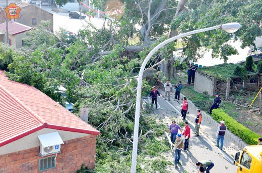 金寧鄉林堡路福寓宮旁,昨日下午發生一起路樹疑似因腐朽不堪風吹而斷裂事件,金門縣林務所在獲報後,即刻派人前往清除。該事件所幸無人傷亡,但有居民車輛遭掉落的樹幹壓壞,林務所長楊慧明表示,無人傷亡實為大幸,然居民車輛受損,林務所方面將會負起補償責任。 昨日下午二時四十分左右,林務所與金寧鄉警局接獲民眾報案,頂堡至榜林路段福寓宮旁一棵近百年老榕樹,疑似因風大,樹枝斷裂掉落橫躺馬路,導致阻礙人車往來,林務所與警方獲報後,隨即派員前往清除及維護交通。林務所長楊慧明也在稍後前往了解狀況,並指示後續賠償事宜。 楊慧明表示,林務所對於金門路樹均有列管,對於危險的路樹均會定期勘驗,若有影響行人車輛之虞,都會定期來修剪。昨日倒塌之路樹,疑似因內部腐朽,因此外觀上難以辨識,加上樹齡近百年,不堪風吹而倒塌。所幸無人員傷亡,實為大幸。對於金門路樹,她將會在指示做一次清查,以維護人車安全。 楊慧明也說,對於昨日遭斷枝壓到受損的車輛,由於該所對金門路樹都有保「全民公共意外責任險」,對於受損車輛,將會向保險公司申請理賠,車主亦可先請車廠估價維修,該所也會派人與車主協商賠償事宜。