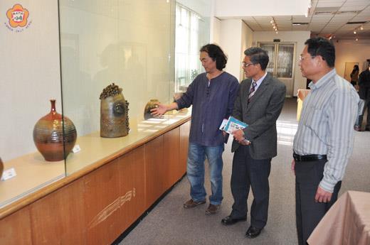 由金門縣陶藝學會主辦的「陶逸、陶趣│一○二年金門縣陶藝聯展」,將於今(二十六)日起,假金門縣文化局第一展場舉行。此次展覽除有陶藝學會的成員外,垵湖分校師生們在名師指導下的作品,也將在文化局上展出,共計近七十件作品,歡迎民眾自今日起前往欣賞指教。 「陶逸、陶趣│一○二年金門縣陶藝聯展」,展出時間為二月二十六日起至三月二十一日止,每天上午八時至下午五時三十分,在文化局第一展場舉行。此次共有金門縣陶藝學會王明宗等十餘位藝術家與垵湖分校師生,共展出近七十件作品。 昨日下午,金門縣副縣長吳友欽前往文化局會勘時,也撥空前往佈展會場參觀,並對學生作品讚譽有加。他表示,學生作品在老師的修飾下,不但展現作品成熟度,更有些許童趣融入其中。而陶藝學會藝術家們的作品,不但技巧精湛,更是相當賞心悅目,他歡迎地區鄉親踴躍前往參觀,也希望垵湖學生家長撥冗欣賞自家孩子的作品。 金門縣陶藝聯展,共計展出近七十件作品(垵湖分校二十九件),參展的藝術家們有陶藝學會理事長王明宗、藝術家有謝華東、吳惠民、吳鼎信、陳金城、盛惠芳、王志明、許玉萍、洪金菊、高川、謝洪言虢、趙雅玉等人,以及垵湖分校學生。