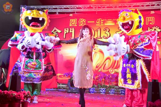 慶祝二○一三金蛇年,蛇年元宵節燈會活動自二十四日在總兵署盛大展開後,將一連展出五天,昨日晚間於總兵署廣場舉辦熱鬧的表演活動,由中華演藝人員總工會率領藝人到場演出,現場吸引許多民眾前往同樂,並一起猜燈謎拿大獎。 金門元宵燈會自二十四日起一連舉辦五天,每天皆有不同活動,讓民眾耳目一新。策畫團隊今年特邀兩岸燈謎專家創作提供三百道燈謎,謎題新舊並陳,雅俗共賞,藉以重現燈謎會盛況,傳承「鼓擊三通,鑼敲一響」古風,也讓大家重溫體驗傳統元宵文化。 此外,現場還有由中華演藝人員總工會秘書長余邦率領葉蔻、小辣椒、章永華、阿雀姨、上官明莉、郭俐玲、水鈴、于恩恩等組成的「群星會金門新春祝賀團」、國際調酒大賽獲獎選手的「花式調酒秀」,以及金門本土的「金門千順電音神將團」、「千順電音風獅爺金門Style」、「金西堡傀儡戲劇團」的表演,現場熱鬧無冷場。 昨日表演自晚間七時起展開,首先由小辣椒以勁歌熱舞開場,炒熱現場氣氛,還有千順電音風獅爺的伴舞,讓場面充滿時尚又復古。而燈謎活動也相當吸引民眾,大家為了獎品,絞盡腦汁想謎底,也讓燈會更有元宵氣氛。 策畫團隊表示,表演活動每天皆有一場,晚間七時至九時,在總兵署前舞台舉行,表演節目每天都不同,一定讓觀眾天天有驚喜,且自昨日起,接下來的幾天,每天晚上還有由贊助單位加碼的鑽石項鍊供民眾猜謎拿獎,也歡迎大家踴躍到現場欣賞,動腦拿項鍊。