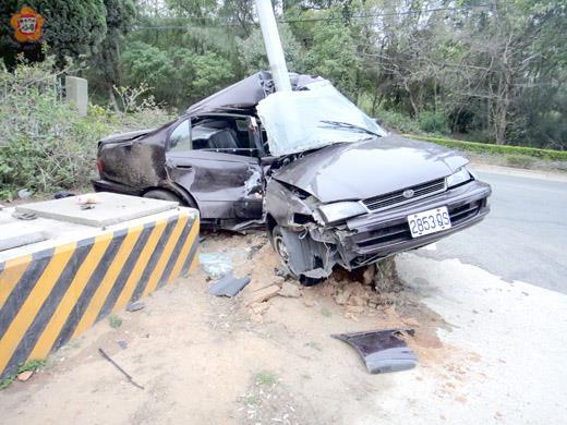 昨日凌晨金城鎮發生一件自撞車禍,一輛自小客車行經莒光變電站前道路時疑因失控衝向對向車道,並撞上路旁的燈桿,導致車身嚴重凹損,令人怵目驚心,而許姓駕駛人則右腿骨折,顱內出血送醫,詳細車禍原因,正由警方進一步調查中。 金城警分局警備隊指出,這起自小客車自撞車禍發生於昨日凌晨四時十三分許,許姓男子(七十五年次)獨自駕駛車號2853-QS自小客車由環島西路一段往吳厝方向行駛,行經莒光變電站(原莒光發電廠)前道路失控衝上對向車道(國慶飯店附近路口)並撞上路旁電燈桿,現場煞車痕長達十五公尺,由於強力的撞擊,導致車頭轉向,整支電線桿深卡進車子右側,車身嚴重毀損,左側駕駛座的許姓駕駛受傷送醫。 警方已為許姓駕駛抽血送檢,不排除是因為酒後駕車而造成自撞車禍,不過,詳細車禍原因仍須進一步調查。而許姓駕駛因為車禍造成右腿骨折,大腦顱內輕微出血,必須開刀治療。 金城分局長王智琨指出,為確保交通安全,減少重大交通事故,將持續要求所屬分駐(派出)所、警備隊針對轄區內易飲酒經過之重要道路、餐廳、酒店周邊道路,編排酒測勤務,加強取締酒後駕車、闖紅燈、嚴重超速、騎乘機車(附載人員)未戴安全帽、汽車駕駛人及前座乘客未繫安全帶等重點違規案件,以減少事故之發生。