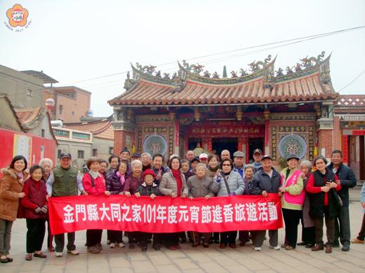 元宵前夕,大同之家舉辦「元宵節進香旅遊活動」,大同之家長輩們分別前往金沙地區廟宇參拜祈福,同時旅遊踏青,讓長輩們走出去活動一下,進行一趟心靈及健康之旅。 昨日上午八時三十分起,大同之家主任許美鳳率領家內安老組員工、社工以及家內長者,共計三十餘人,前往沙美萬安堂、浦邊六甲三鶯廟上香祈福,同時遊覽沙美市集與金門植物園,讓長者們走出戶外踏青去。 大同之家元宵進香旅遊活動,三十餘人首先前往萬安堂及三鶯廟參拜,接著遊覽沙美老街市集,再由經沙美閩式燒餅店時,老闆娘大方致贈四盒燒餅予長輩享用。稍後才參觀植物園,在楊所長及陳西村陪伴解說下,讓長輩了解昆蟲及植物園環境,並欣賞金門紀錄片「綠動金門」,讓長輩們享受一趟視覺味覺的身心靈之旅。