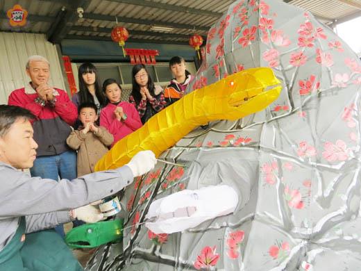 花燈達人蔡淇泰趕製三組蛇燈