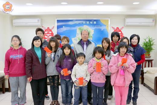 大同之家主任許美鳳昨日帶領育幼組院童「過海」烈嶼旅遊,也到鄉公所「作客」,鄉長洪成發親自接待院童,還贈送紅包賀年,他鼓勵院童永不放棄學習的機會,日後一定能為社會所用,服務社會。 許美鳳帶領育幼組服務人員和九名院童到烈嶼鄉參訪,在鄉長洪成發的熱情邀請下,也到鄉公所觀看戀戀烈嶼的影片,以及參觀鄉史館,讓院童更認識烈嶼鄉的風貌和人文風情。 農曆春節將屆,小朋友最開心的是能拿到長輩的壓歲錢,洪成發也為院童準備壓歲錢紅包,讓院童們提前感受過年的溫馨。 鄉長洪成發說,大同之家安老組和育幼組的安養環境,比台灣許多安老院和育幼院的環境,有過之而無不及,服務人員也盡心盡力的提供服務,他鼓勵院童要好好珍惜政府所提供的完善生活環境,認真的讀書,努力上進,在各學習教育的階段,不斷的向前學習邁進,不要妄自菲薄,以後一定能在各行各業有所成就,服務社會。