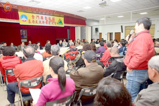 金酒、醫療、水資源!金城鎮基層民政幹部座談會昨天盛大登場,金城地區里鄰長齊聚金城鎮公所暢論政務,針對金酒酒品配發,署立醫院服務態度、轉診措施,以及水資源保持等相關課題發表建議,縣長李沃士也與縣府一級主管在場同步回應,期望能整合民意推動相關政務。 這場座談會是在昨天下午四時整,於金城鎮公所七樓展演廳舉行,由縣長李沃士與金城鎮長石兆瑉共同主持,與會人員包括縣府一級主管、縣議員陳滄江、金城鎮代會主席陳天成、署立金門醫院院長顏鴻章及金門國家公園管理處秘書蘇承基、西站主任許丕祥等人,金城地區的里鄰長們也熱情參與、出席與會。 會議一開始,由民政處長翁伸金率先進行簡報,緊接著則由各村里長提出政務建議,其中又以金酒、醫療及水資源課題最受重視。東門里許建忠在會中建議縣府應向民眾說明莒光湖畔BOT案具體計畫內容,以及對金門的具體貢獻,並於浯江溪南側興建南堤路,讓水頭的車輛能由金山接道尚義機場。許建忠也提醒,大陸買水非長遠之策,金門應該做好水土保持,避免水資源浪費;另外他對於相關單位未回應去年民政會議發表拆除停車場、改善浯江溪的建議也表達不滿,希望縣府給個交代。 另外,古城里葉長輝則建議仿崇武古城,重建明代的金門城城牆及城門;同時要求金酒公司應補償空污,協助清潔金門城居民的房舍,充實葉華成故居的展示內容;賢庵里陳越羨則建請署金增設核磁共振等專業醫療機器,加強查緝台灣人假離婚、申請低收入的違法事件。來自珠沙里歐陽彥椿則認為,金門醫療轉診比例高,建請提升醫療品質,他同時籲請縣府於榮總醫院租賃休息室,提供縣民赴台就醫休憩、寄放物品等。西門里蔡金珊要求拓寬大同之家往鳳翔社區道路,在社區內設立路標、車位,同時在金門高中圍牆旁建置景觀路燈,串連慈湖路一帶的旅館與金城市區。東門里洪振源則建議金門社區發展協會比照台灣同鄉會批售酒品,戰地政務土地無法辦理登記,縣府應該協助鄉親解套。 對於里鄰長相關建議,縣長李沃士回應表示, BOT仍提供土地供企業經營,待年限截止後全部回歸政府使用,政府再依年度收取權利金;至於水資源問題,他則表示海水淡化廠成本高,一度約一百元,未來向大陸買水,仍會維持自有水源六成、陸水四成的比例;另外縣府已與劍潭青年活動中心簽約,提供優惠價格供鄉親就近照顧,並藉由相關政策的執行,落實醫療在地化。 另外,陳滄江則表示,目前地區土地價格高漲,縣府確實應討論放寬住宅限建制度,議會也會要求縣府在BOT案執行前召開公聽會、傾聽民意,至於各局處也在會中針對相關提議進行回應。同時將提案列管考核、加強執行進度。 會後,眾人也在國慶飯店進行聯誼餐會,頒獎表揚績優里長黃國民,以及鄰長歐彥墐、林淑英、許及松、鄭鳳仙、張羨玉、薛留芳、黃幸甚、蔡彩華、辛文進、董婉君、王志雄、李仁土、許天順、陳彩倪、李一宏、許碧鳳、林有禮、黃思泓、蔡張明玉、汪瑞福、洪水仲、陳寶玉等人。