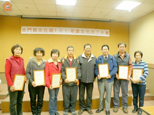 聯繫志工情誼,金門縣文化局日昨召開「一○一年度文化志工年終大會」,邀請到數十位文化志工出席參加,文化局長李錫隆在致詞特別感謝各志工於去年度無怨無悔的付出,讓地區的文化發展更加豐美。 「文化局101年度文化志工年終大會」是在日昨下午四時許,假文化局三樓視聽室舉行,由副隊長許淑卿主持,共計有四十餘位志工參與,包括文化局長李錫隆、課長周祥敏等人列席與會。在會中,文化志工辦理組織章程修編、績優志工表揚、頒發志工聯絡人感謝狀及相關隊務討論事宜等。 文化局局長李錫隆表示,文化局的業務量繁重,感謝志工伙伴一路相挺、協助幫忙,讓各項活動均順利進行,也期盼在未來的一年裡,希望大家皆能繼續為地區文化活動用心付出,並一同為傳承金門藝文風氣努力。 負責文化志工業務的周祥敏課長也特別於會上向各位志工拜了早年,新的年度將繼續仰賴文化志工的付出。 會中,李錫隆也頒獎表揚年度績優志工及各組聯絡人,其中包括薛承敏、黃淑貞、楊淑卿、楊秀華、黃莉莉、王賢德、陳添財等七位文化志工,以及張采玉、許淑卿、李素娥、陳彩仙、陳碧麗等各組聯絡人,而在會中也特別安排志工嚴辰生及黃莉莉也在會中示範了「十巧手」,希望志工夥伴們在平日可以隨時隨地透過簡單的按摩,通過刺激手部穴位,達到按摩全身、五臟六腑的效果,促進身體健康。並於會後,舉行歲末餐敘聯誼活動,在歡愉的氣氛中,增進志工的情誼,並互祝新年快樂。