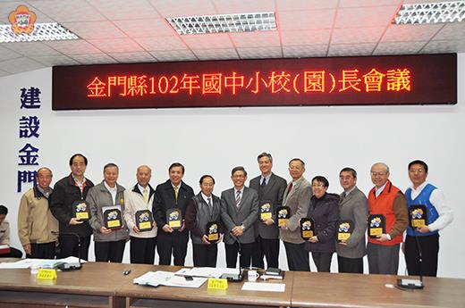 金門縣一○二年國中小校(園)長會議昨召開,副縣長吳友欽期許各校校長辦學用心,發展學校自己特色,以起上行下效作用,讓金門教育事業辦得更成功。 會議昨日上午八時三十分起至下午三時三十分許,在縣府大禮堂會議室召開,由副縣長吳友欽主持,教育處長李再杭、副處長陳金文、地區五所國中、十八所國小校長及金城幼兒園園長盧淑惠、國立金門大學校長李金振、國立金門高中校長蔡錦杉、國立金門農工職校校長劉湘金,以及教育處、主計處等相關主管與會。 會中,吳副縣長頒獎表揚一○一年度金門縣語文競賽績優學校。吳副縣長指出,金門在國語文推動努力,成績亮眼,並期各校再加強觀摩與對學生指導,讓金門教育事業辦得更成功。 與會校長也針對教育發展基金使用、學校幹事建立輪調制度、英文中檢設獎勵金、教師員額提高……等等,提出廣泛討論與建議。 會議中研討提案包括,由教育處學管科提案-有關教師請假,依「教師請假規則」由學校核准或定之,核假權利擬依法回歸學校。教育處社教科(家庭教育中心)提案│一○二年教育部訂定為「一○二家庭教育年」,並規劃四季活動主軸策略,請各校依各季核心理念與關鍵措施配合宣導並將活動納入學校行事曆。金寧中小學提案│為顧及幼生學習的安全性,及保障師生的權益,擬請縣府不論幼兒園一班學生人數為多少,皆設立兩位教師或一教師一教保員或兩教保員,各園並配有一園教保員協助園主任。金寧中小學提案│幼托整合後,教保員進入各幼兒園,擬請教保員契約統一由縣府發與各校簽訂。金寧中小學提案│幼托整合後,各校設立幼兒園主任,幼兒園主任皆為新上任,主任責任歸屬及工作性質皆在摸索中,擬請教育處舉行一園主任會議,如同校長會議,讓各校園主任針對幼兒園提出更具體的建議。金寧中小學提案│幼兒園廚工分配各所,廚工的工作內容及責任歸屬尚未明確規定,擬請縣府擬訂一份詳細幼兒園廚工工作內容發與各校,讓各校能更明確了解幼兒園廚工的工作分配。金寧中小學提案│為金門縣跨校團隊動畫電影入圍「第29屆芝加哥國際兒童影展」擬請補助團隊成員出國交流。烈嶼國中提案│學校和沙中、寧中一樣,因輔導室編制問題,特教老師需要協助辦理特教行政業務,且特教業務量日益增多,能否在本縣教師授課時數修正時,比照兼資訊業務,可酌減二節,並明訂於授課時數規定裡。開瑄國小提案│國小廚工請比照幼兒園廚工之聘用方式辦理。開瑄國小提案│輔導團員建議推動輪流制,使精進教學理念達於普及化。