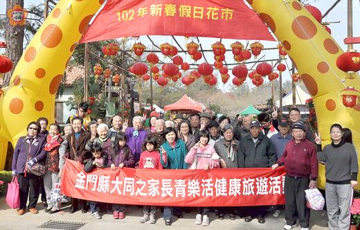 金門縣林務所昨日舉辦一○二年新春假日花市活動,現場出現許多貴賓,他們是來自大同之家的長者,在主任許美鳳的帶領下,前往林務所踏青,來一場健康樂活旅遊,繽紛的花草景觀也讓三十餘位阿公阿嬤滿心歡喜! 大同之家主任許美鳳表示,每個月為配合地方大型活動帶老人家外出旅遊,昨剛好結合林務所假日花市活動,行動方便的三十一位長者在志工的協助下到林務所踏青,老人家跟著人群互動,賞花、曬曬太陽,笑容全寫在臉上。 今年九十歲的翁姓阿嬤說,外出旅遊真的很開心,林務所花花草草十分漂亮,讓人心情很好。許多阿嬤也在假日花市中,對廠商設計的花卉盆景欣賞評論一番,更參加宣導活動,獲得不少宣導品,帶著滿足的笑容回家。 除了老人家外,育幼組的幼童昨也前往爬山,隨後並於林務所和長者們在假日花市中碰面,一場宛如祖孫出遊的畫面,為繽紛絢麗的花卉場地增添些許溫馨氣氛。