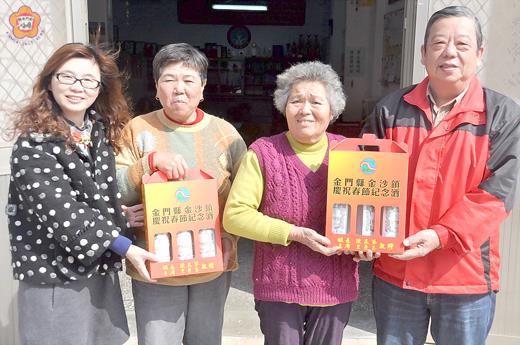 金沙鎮一○二年度春節敬老禮品一月二十四日起於各里發放,根據一○二年一月十日之戶籍資料,總數為兩千兩百七十一人。金沙鎮公所提醒民眾,各里發放作業至今天一月二十七日止。一月二十八日起至二月二十八日,則請符合資格者於規定時間內前往鎮公所領取,洽詢電話352150。 金沙鎮鎮長陳昆第表示,金沙鎮發放春節敬老禮品已多年,早期禮品及方式略有不同。自上任後考量金酒為地方產業,又逢農曆新春為向長者致敬,故以金門高粱酒作為禮品,且在鎮代表會支持之下,持續發放迄今。希望讓老人家能闔家過年團圓時分享,歡度佳節。而今年總數為兩千兩百七十一人,目前於各里發放中,過程順利,長輩也相當歡喜,在此向全體鄉親拜個早年,祝賀身體健康、新年快樂。 金沙鎮民代表會主席王秀玉也表示,金沙鎮春節敬老禮品發放已行之有年,每年發現老人家領取禮品時都十分高興,可以感受其內心之歡喜。今年在金沙鎮公所規劃下,增列一百四十八位鄰、里長為發放對象,也獲鎮代表全力支持。期望藉以慰勞辛苦的基層服務人員,也向所有長者賀新年,逢農曆春節也祝全體鄉親新年快樂。