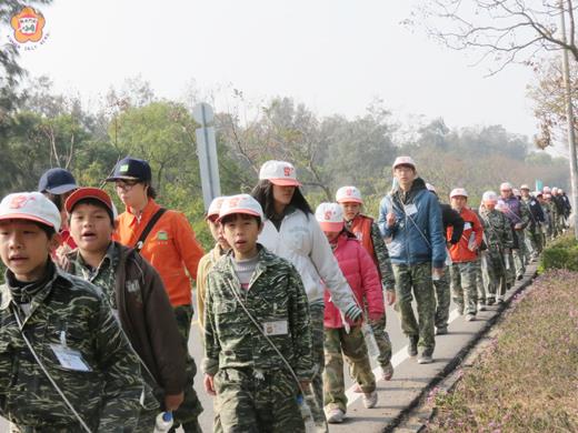 小小金門戰鬥營的學員,昨天完成由陽明二營區行軍到太武山的考驗;參加的小朋友說,在戰鬥營中,既增加了體能,也增加了飯量-有人一餐吃了七碗飯! 昨天,四十多位國小及國中學員,由值星官唐皓翔(金門大學學生)帶隊,從陽明二營區以一路縱隊行軍遶過鵲山「八二三戰役勝利紀念碑」,走向太武山,然後由屏東登山口爬山,目標是在「毋忘在莒」勒石前進行「反霸凌、反幫派、反吸毒、反暴力、反援交」宣誓;下午回到陽明二營區之後,則還有五百障礙等著他們,然後結訓。 參加的學生中,黃宇慈在一路縱隊中「殿后」(行軍時走在最後),她說,好累!張善群是一路縱隊的「先鋒」,他說:好玩!他在活動中學會了與人團結一心。 一路縱隊中間的學員如賴奎均、馮冠瑜覺得體力費了不少,飯量也增加很多,有人一餐吃了六碗,有人一餐吃了七碗。 以「新兵日記‧報告班長之小小金門戰鬥營」為主題,救國團金門縣團委會於一月二十五、二十六、二十七日承辦了冬令戰鬥營,並採用多元教學、寓教於樂的方式。