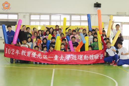 國立體育大學幼兒體育社的志工利用寒假下鄉服務學習,志工發揮關懷學童的精神,在剛放寒假就前往金門縣金寧鄉金鼎國小舉辦教育優先區寒假冬令營,陪伴近六十位小朋友展開三天的「一童去郊遊」運動體驗營活動,安排各民俗體育及新興運動等七項課程供學童學習,還有富趣味性的大地遊戲與團康活動,讓小朋友有個充實歡樂的假期生活。 教育部與行政院青年輔導委員會合力推動之「教育優先區冬令營隊活動」,其主要目的是縮小城鄉差距,並將關懷的觸角深入偏遠地區,提供學童們有更好的學習環境和資源。因此各社團特將各種新興的運動及其相關知識帶入受服務地區,讓學童從營隊活動中得到多元的學習,充實學童生活內涵,並透過趣味化設計的教學活動,使其強健體魄,提升運動之風氣;更進一步地,藉由課程活動讓孩童學習互助互動,發展其社會性,培養健全之心智。 這項由教育部、行政院青年輔導委員會、國立體育大學課外活動指導組指導,國立體育大學幼兒體育社舉辦的教育優先區寒假冬令營「一童去郊遊」運動體驗營活動,由體育大學幼兒體育社總召陳樹名帶領,成員包括行政組兼醫護組:呂龍驤、李沛鈴,總務組:謝孟珊、呂佳盈、翁靖雯,場器組兼活動組:陳駿逸、蘇海慶等志工,於一月廿二日至廿四日前往金鼎國小展開三天活動。