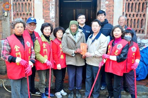農曆年關將近,金門縣榮民服務處為讓地區榮民過好年,於昨日起展開下鄉春節慰問暨居家服務,結合榮服處榮欣志工隊員們,前往各地區單身榮民,協助其除舊佈新,迎接嶄新的農曆新年。對於榮服處熱心的服務,協助讓住居煥然一新,讓榮民們備感溫馨。 榮服處春節慰問暨居家服務,自昨日起展開,由五鄉鎮志工隊分別前往地區單身榮民家中進行慰問,以及協助居住場所除舊佈新。 昨日上午十時,榮服處金沙區志工隊在副處長吳媽定領軍,率金沙責任區服務組長王志慶、輔導員許應強、志工隊長黃秀英、隊員林英、何能愛、林美雲、楊恭同、何秀貞、蔡昭德以及替代役何宗瀚等人,前往單身榮民何再羨、梁荼梅、林水生、王世博等人住所,晚起袖子,幫忙除舊大掃除。 吳媽定表示,地區榮民是榮服處的服務對象,而過年大掃除更是華人農曆年前必須的工作,加上地區的單身榮民們年紀已大,要單獨清掃居家實有困難,因此在年關將屆之際,才會結合榮欣志工們,一起來協助榮民打掃家園。