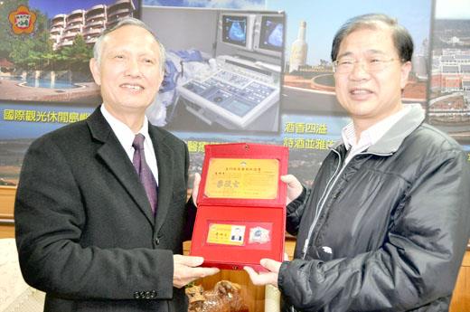 金門縣長李沃士為感念內政部地政司司長蕭輔導致力協助本縣土地疑難雜症問題「解套」,貢獻良多,昨特別頒贈金門縣「榮譽縣民證」予他,同時歡迎他退休後常回到金門,與三五好友酒敘話家常,乃人生一大愜意的事。 內政部地政司司長蕭輔導將於二月十八日告別公務生涯。金門縣長李沃士昨下午二時接見他,同時頒金門縣「榮譽縣民證」予他,縣府機要秘書鄭志傑、民政處長翁伸金、地政局長林德恭等在場觀禮祝賀。 李沃士縣長肯定地政司司長蕭輔導對金門土地測量、推動區段徵收、測量精度提升、農地重劃、地籍整理、健全土地登記及工業區巿地重劃等等業務,全心全力協助及提供相關技術,對金門貢獻良多。 地政司司長蕭輔導,四十年次、彰化縣人。獲金門縣「榮譽縣民證」具體事蹟包括,93至95年指派測量局第二隊蒞金協助佈建四等控制點及圖根點,奠定良善地籍測量基礎。 93年協助金門首開第一期(救國團對面)區段徵收,復於97年賡續推動第二期(金湖巿港路)區段徵收,成效卓著。96年協助本縣地政局建置測置儀器檢測基線場適時校檢測量儀器,並引進各式精密測量儀,提升測量精度,減少界址糾紛。 其次,96年協助本縣規劃設計監造烈嶼大山頂農地重劃,改善農業環境提升農地利用價值成效顯著。指導本縣研修金門縣土地地籍整理自治條例用符因地制宜,解決本縣土地疑難雜症問題。 另研修離島建設條例第九條及增訂第九條之三條文落實還地於民及有效處理雷區土地事宜。指導及協助本縣地政局健全土地登記及地籍管理事宜依法行政,維護民眾土地權益,促進土地利用。 此外,協助本縣首辦國順街工業區巿土地重劃,已完成規劃設計事項,正待發包施作,將可提升土地整體開發利用價值。