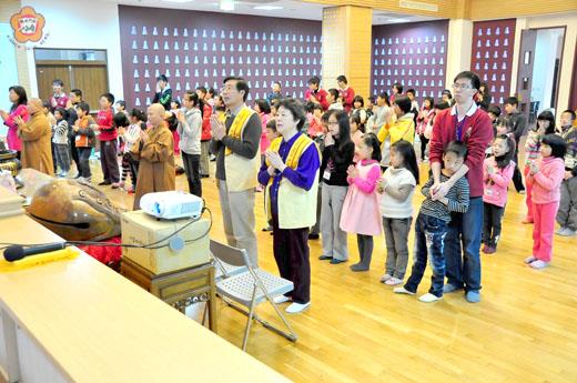 「二○一三年│佛光山金蓮淨苑三好兒童冬令營」昨(二十三)日舉行結營典禮,三天的營隊圓滿成功。參加的孩子們臉上滿溢笑容,心中收穫滿滿。佛光山金蓮淨苑主持永勤法師期盼,三天的學習成果,要能融入生活中,落實三好兒童的內涵,成為一個有教養的孩子。 三好冬令營是由金蓮淨苑主辦,佛光會金門協會協辦,安國寺青年團協辦。三天營隊共有九十位地區二至六年級學生報名,冬令營由安國寺青年團及金門地區青年志工,共計二十餘人擔任隊輔,帶領學童進行三天的學習活動。 結營儀式於昨日下午四時三十分起,假金蓮淨苑舉行。典禮中,永勤法師致詞說,由學生們的表情可得知,三天的營隊相當成功。他舉例孩子們用餐時,懂得不挑食、讚美,這都是三好的表現。他希望孩子們三天的學習成果,不要走出金蓮淨苑後就拋諸腦後,而是要落實在生活中,時時刻刻感恩父母,說好話、做好事、存好心。 三好冬令營自二十一日起,為期三天。營隊除探討佛典故事,還有一系列的生命訓練體驗,以及摺棉被、衣服、針線活等生活技能訓練,另生活禮儀、說話態度技巧等亦是在營隊中學習重點。學生對於三天的活動,表示收穫豐碩。
