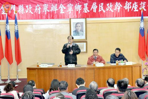 縣長李沃士昨日下午率領縣府團隊前抵金寧鄉公所和基層民政幹部座談,聽取地方的建言、瞭解地方的需求。他說,村、鄰長是縣府服務民眾的第一線民政幹部,也是最了解民眾的問題,感謝大家對於縣府、鄉鎮公所施政支持,各項業務才能順利推動,符合民眾的期待。 縣府一○二年度基層民政幹部座談巡迴列車昨日開抵金寧鄉公所,縣長李沃士帶領縣府局處主管和金寧鄉長陳成勇、金寧鄉代會主席楊萬山及署立金門醫院院長顏鴻章、國家公園秘書蘇承基等一起和鄉代表、各村村長、鄰長、調解委員面對面討論地方的事務,基層民政幹部出席非常踴躍。會中並由縣府民政處長翁伸金進行縣政施政簡報。 縣長李沃士感謝鄉親對於縣府、鄉鎮公所施政支持。他說,很多施政因為大家的支持才能順利推動,尤其是鄉代表、村長、鄰長是服務民眾第一線,也是縣府的眼睛,像是鄉村整建等等,幫忙溝通協調,整個施政才能這麼順利,也特別表示感謝。 李縣長指出,一○一年度告一段落,也藉此將縣府施政成果向大家做一個報告,鄉親是頭家,把施政的成果與內容向大家做一個報告,這是負責任的態度。也聽聽大家對於地方建設的意見,一起來研議如何將各項建設與制度做得更好,更符合民眾的期許。 他也指出,新的年度縣府很多福利要來推動,包括補助縣民健康檢查,每一位縣民補助三千五百元,希望鄉親出一半、縣府出一半,做好包括血管、腦部、癌症等更好的健康檢查,增加對健康的保護。同時縣府今年起也補助不孕夫婦進行不孕症治療,每次補助八萬元。 昨日與會的基層民政幹部發言相當踴躍,建議事項包括:建議將縣府對於老人身心障礙者津貼改為慰問金。身心障礙者家庭子弟打工優先。提升署金醫師的醫術及服務態度以減少病患的疼痛及誤診情形。古寧頭出海口海路鋪設水泥道路。憑身分證買船票赴大陸。酒糟供應不足。中心教練場營區的垃圾丟到圍牆外,影響環境。鄉民中風多年應主動前往慰問。後湖鄉村整建工程廢棄物沒有適當處理。金城民族路違規停車,警方取締不力。民國三十八年榜林村宮廟遭軍方拆除,地方有意重建但土地不夠,建議協助申購國有土地。春節機票民眾買不到,旅行社卻有票。學校對於學生的處分應該告知家長。轉診陪同人員的醫療交通補助,應不限病患需達六十五歲或急重症。而病患與陪同人員後送台灣後回金的機位,希望能協調航空公司能優先候補。安岐、古寧頭北山出海口塌陷,防波堤的修建及道路與景觀改善能儘速進行。工程廢土傾倒要加強巡查。為保護鳥類而導致農民種植農作物遭鳥吃掉,應該編預算來補貼農友才公平。縣府招考的臨時工鄉鎮分配的人數應該提高,用來支援村公所的環境整理。之前金門大橋施工廠商造成湖下居民海蚵受損賠償,希能督促廠商做好賠償工作等等。 對於會中反映的問題,縣長李沃士、署立金門醫院院長顏鴻章、國家公園秘書蘇承基、鄉長陳成勇也當場做出說明。展現解決鄉親難題的誠意。 李縣長也要求縣府各局處應對於提出建議基層民政幹部瞭解實際問題,並親自去看,回做再來做決定,能做就盡快去做,有問題要說明,多溝通、互相瞭解,才不會有誤解。他也說,建設有輕重緩急,縣府一年預算有限,今年沒做,明年優先來做,按照程序來走,前提是不能違法。 他也歡迎鄉親多利用縣府「一九九九」服務專線,反映問題,為縣民提供更好的服務。