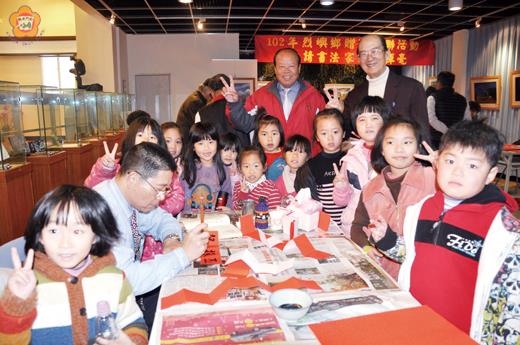 烈嶼鄉公所為了迎接農曆新年的到來,昨日援例辦理「迎新春、贈桃符」活動,邀請金門書法學會理事長洪明燦等書法家,共聚烈嶼鄉文化館二樓,現場揮毫春聯,贈送給民眾。鄉長洪成發也向前來索取春聯的鄉民,提早拜個早年,並鼓勵在場的小朋友勤練書法,傳承國粹文化。 春聯贈送活動於昨日上午九時展開,各村的民眾陸續到文化館索取有年味的傳統春聯,迎接蛇年的到來。 金門書法學會理事長洪明燦和洪明標、王金鍊、蔡錦海、吳國泰、陳安全、洪松柏、陳添財、陳志鈺、許永贊、林明鍊、翁坤成等書法好手,現場揮毫,也應民眾需求,寫下民眾自己喜歡的年節賀語或是春聯對句,文化館館長林水綠和志工在場協助,現場擺滿了一副副的大紅春聯,墨香四溢,充滿濃濃的年節氣氛。 鄉長洪成發由鄉公所代理秘書方小萍、社會課長洪國泰、機要秘書方駿洋等幹部陪同,到文化館感謝為民眾服務的書法家。 洪成發表示,鄉公所發揚傳統民俗,延續傳統新年氣氛,每一年的農曆新年前都會舉辦手寫春聯免費贈送活動,邀請熱心協助活動的書法家現場揮毫,已是鄉公所在歲末時節中的特色活動之一,更重要的是,透由活動來承傳並發揚中華固有的書法藝術文化,增添濃濃藝術氣息與喜洋洋的吉祥年意。 卓環國小也安排學生到文化館體會書法藝術之美。洪成發看到學童專注看著書法家揮毫春聯的表情,開心和小朋友合影,鼓勵小朋友練好書法,親自體驗寫春聯的樂趣。現場也有學童自告奮勇嚐試寫春聯,受到在場長輩們的鼓勵,很開心拿著自己寫的春聯回家。 鄉長洪成發希望透由活動於發揚傳統習俗的同時,也能利用機會教育孩子傳承國粹的文化。洪成發恭賀鄉親福氣滿滿過好年。