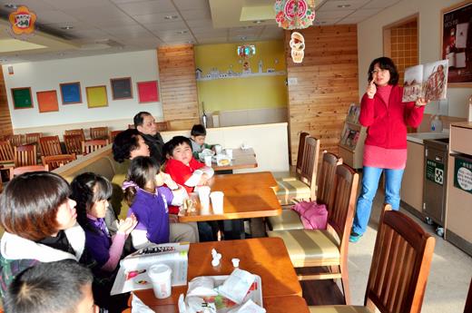 垵湖學生快樂學習,吃漢堡聽故事,快樂學知識。賢庵國小垵湖分校的「娥媽媽說故事」日昨在地區連鎖速食店摩斯漢堡內舉行,參加的學童快樂的吃著漢堡薯條,聽著動人故事,所有小朋友均表示,這樣的經驗很有趣,而且故事也聽得更生動有趣。 垵湖分校表示,學生稱「娥媽媽」的涂碧娥女士,對於該校貢獻良多。這學期更為了獎勵垵湖分校的學生,建立閱讀的習慣,培養世界觀。特地自掏腰包,只要孩子們閱讀十本書,並完成悅讀卡後,就發給一張摩斯漢堡早餐券,以獎勵其認真閱讀。 這場有趣的「娥媽媽說故事」,於日昨上午七時三十分至九時止,在摩斯漢堡二樓舉辦。在垵湖分校薛奕鳳及趙雅玉兩位老師的帶領下,該校一、二年級的小朋友,興奮的吃著漢堡聽著娥媽媽說「飛啊!老鷹!飛啊! 一個非洲的故事」。 薛奕鳳及趙雅玉表示,相當感謝涂碧娥的愛心,提供這樣特別的獎勵,激發孩子閱讀。她們說,悅讀卡的內容,須註明有書名、作者、書中的名言佳句、閱讀後相對某件人事物說的一句話,以及閱讀心得。因此要獲得早餐券,是相當不容易的,而藉由製作悅讀卡,就是希望提升孩子們想像的空間,並且學會與自己對話,增加自身的語文創作能力。 涂碧娥指出,孩子的潛能是無限的,提供早餐券就是給一個誘因,一方面是為了獎勵孩子們,培養閱讀興趣。加上早餐券並無數量上的限制,只要完成十張悅讀卡即可獲得一張,故而也是藉此讓孩子們了解「付出」的重要性,也讓他們知道父母親辛苦教養培育他們的辛勞。孩子們獲得兩張以上的早餐券,除了可以讓自己吃大餐外,多餘的餐券更可以送給父母,讓他們學習到並非長大才做,也讓他們以行動表達自己是有付出的能力。 學生許詠慈及許皓煒表示,他們分別完成四十張及二十張悅讀卡,多餘的早餐券也送給了爸媽。而能夠在摩斯吃早餐聽故事,讓他們聽得更入迷。 這場說故事活動,娥媽媽為孩子們說「飛啊!老鷹!飛啊!」,教導孩子要當翱翔天際的老鷹,不要被世人塑造的形象所束縛。
