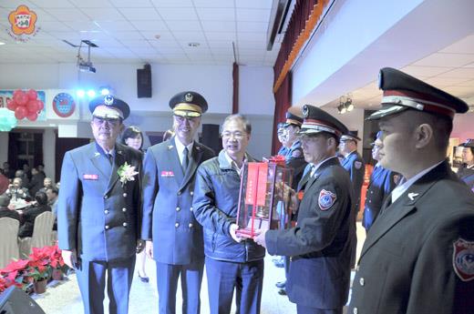 金門縣消防局昨天舉辦第十八屆消防節慶祝表揚大會活動,縣長李沃士頒獎表揚績優消防、義消、志工人員及參加各項比賽績優人員,李沃士期許消防局伙伴們精益求精,訓練不鬆懈,做好消防工作的萬全準備和落實訓練,發揮專業知能與技能,更希望不要有任何災害發生,不幸有任何災害也能在最快時間讓災害損失降到最低,保障民眾生命及財產的安全。 每年的一月十九日係屬於消防人員的日子,金門縣消防局為歡慶這個特殊且具有意義的節日,昨日晚上六時假該局二樓禮堂舉行第十八屆消防節慶祝大會活動,縣長李沃士、縣議員陳滄江、金防部副參謀長陳用生、政戰副主任李清俊及縣府財政局長黃景舜、金城鎮公所主任秘書黃耿銘、金城鎮民代表會主席陳天成,卸任金門義消總隊總隊長顏達仁以及各國中校長和來自各鄉鎮義消和職消到場參加與祝賀佳節,受到消防局長楊肅凱、副局長王世祿與金門義消總隊總隊長張光海等熱烈歡迎。 表揚大會由縣長李沃士主持並頒獎表揚金城消防分隊分隊長陳莒揚、金湖消防分隊分隊長周柏彰、金城消防分隊隊員黃評仕、金沙消防分隊隊員柯文才、義消第二大隊副總幹事梁長隆、金寧義消分隊幹事許志堅、金沙義消分隊副分隊長許怡傑、金城義消分隊副小隊長莊輝淼、金湖義消分隊隊員李翰章、金城義消分隊隊員王蓁辰、烈嶼義消分隊助理幹事林長征、救生分隊副小隊長李龍添、救生分隊隊員謝知學、婦女防火宣導隊隊員洪金鈕、婦女防火宣導隊隊員林梨娟、鳳凰志工隊副分隊長蔡郁琪、鳳凰志工隊隊員許績松、金城睦鄰救援隊組長莊彩雲等十八位績優消防、義消、志工人員。 李沃士也頒贈感謝牌給予蔡育仁,感謝其捐贈消防局災防教育用互動式循環式水滅火器乙組,藉以提高各級學校學生及縣民參訪與體驗之樂趣,將消防工作向下紮根;此外,消防局著力於救災結合軍方資源,共同打造無災新家園,提升服務品質,建置金防部救災責任區劃分單位申請兵力對應表,當需要軍方支援時,軍方即可立即出動支援,有效縮短支援時間,把握分秒必爭的搶救時機,因此特別由李縣長頒發陸軍金門防衛指揮部各守備區救災感謝狀,勉其辛勞。陳滄江、陳天成受邀頒發財團法人消防發展基金會金質鳳凰胸章予退休義消人員第一大隊第一中隊助理幹事施勝開、第二大隊副總幹事蔡天在、救生分隊隊員施性賢及在職服務滿三十五年義消人員總隊副總幹事陳火炎、第一大隊副總幹事林建來、第二大隊副總幹事楊德昌,以及參與義消競技大賽比賽得獎績優人員。 縣長李沃士致詞表示,過去的一年在所有伙伴努力下,金門也獲得幾項非常不容易的獎項,包含連續三年在防災演習三度蟬聯全國丁組第一名,同時在業務訪評也得到相當好成績,義消朋友在全國的競技中也有好成績,顯示消防局伙伴、打火兄弟在消防局長與義消大隊長帶領下,過去一年成績非常亮麗。 李沃士也指出蔡育仁董事長捐助消防設備,林榮輝董事長高堂去年也捐贈救護車,金防部各單位對金門地區救災的支援,讓大家感受到軍民同島一命,任何火災都看到大家共同合作快速撲滅,尤其防火宣導救災訓練過程,也感受到許多單位支持,特藉此表達感謝。李縣長表示,防災工作可從基本功夫做起,從每一個家庭都能做好災害預防與措施,整個社會就能更減少不必要災害,期待未來社會能達到零災害境界。期許消防局伙伴們能以「廉能、效能、專業、服務」的工作精神來迎接挑戰,精益求精,訓練不鬆懈,做好消防工作的萬全準備和落實訓練,發揮專業知能與技能,保障民眾及財產的安全,更希望不要有任何災害發生,不幸有任何災害也能在最快時間讓災害損失降到最低,使金門縣消防安全工作達到零災害,提供縣民一個最安全、舒適的生活環境,進一步朝無災島之目標邁進。 消防局長楊肅凱也期勉大家應繼續秉持過去優良傳統,無私無我、犧牲奉獻,盡全力做好災害防救工作,為民眾提供最佳服務品質與最有保障的生活空間。同時,楊肅凱更期盼消防局能進入另一嶄新階段,以作為守護全縣民眾生命財產安全的精兵。