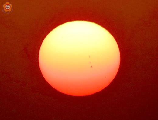 張建騰/圖文 太陽黑子! 成功海邊日落時,太陽公公圓圓的臉上好像長了青春痘或老人斑?那應該就是太陽黑子! 根據台北市立天文科學教育館發布的消息,太陽表面的龐大黑子群正湧現中;在一月二十日以前,日落或日出,陽光較不刺眼時,用肉眼就可以看得見。 在傍晚或黃昏雖可肉眼觀察太陽黑子,卻不宜直視太陽過久,以免眼睛受損。 根據美國大氣海洋局(NOAA)的觀測,編號AR 1654的太陽黑子,面積(含半影)約為太陽半球面的百萬分之九百五十七,約為地球總表面積的二十二倍。整群黑子分布甚寬,達十八萬公里之多,約為地球直徑的十四至十五倍。