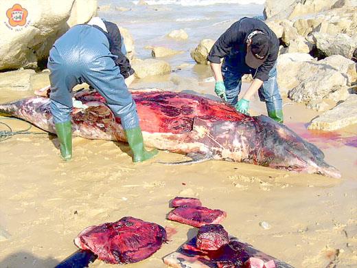 金門首例喙鯨客死后扁海灘