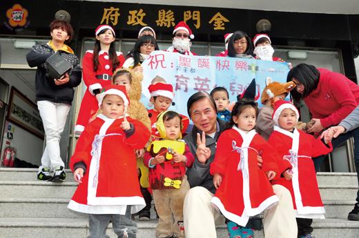 一年一度的聖誕節即將來臨,昨日天主教育英幼兒園的一群小朋友,在佳節前夕,在老師們的帶領下前往金門縣政府報佳音,預告佳節的到來並送上糖果以表祝福。縣府主任秘書盧志輝也回贈小禮物,孩子們收到禮物笑開懷。 昨日上午十時許,育英幼兒園幼兒班的學生,在身著聖誕裝的幼兒園教師群的帶領下,一群人自幼兒園出發,朝著目的地金門縣政府邁進,沿途分送糖果予行人,預告聖誕佳節將至。而育英師生也受到縣府主任秘書盧志輝的熱烈歡迎。 盧志輝表示,看著這群天真無邪的孩子們,在聖誕節前夕來縣府報佳音,讓嚴肅的公務機關頓時柔和許多。而藉由報佳音活動,讓孩子們認識聖誕節,寓教於樂,相當有意義。 育英幼兒園說,「報佳音」的活動,是人們模仿天使在聖誕節前夕到處報人傳講耶穌降生的消息而衍生,時至今日該活動已是聖誕節中一項不可或缺的節目之一。 昨日活動,孩子與教師們身穿聖誕裝,沿途發送糖果並送上「聖誕祝福」,抵達縣府大門口處,發送糖果點心給過往人們,最後在與盧主秘合影後,為這項溫馨的活動畫下完美句點。