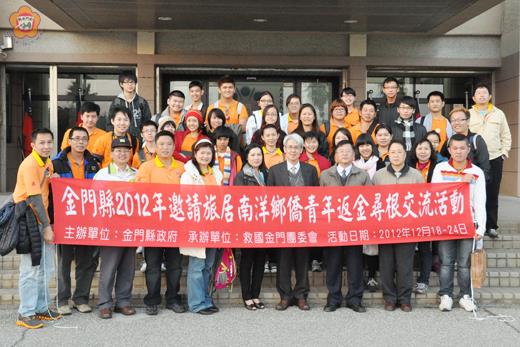 返金展開尋根交流之旅的馬來西亞金門鄉僑子弟一行,昨日前抵福建省政府拜會,省主席薛承泰在熱烈歡迎他們返鄉尋根之際,也介紹金門閩南文化、僑鄉文化、金酒文化、戰役史蹟,及自然生態等特色,他也希望鄉僑子弟把返鄉感受的鄉情,及所見所聞帶回僑居地,為金門宣傳、行銷,讓更多的海外金門鄉親第三代、第四代、第五代的年輕子弟組團返金串連鄉情,延續長輩們熱愛家鄉的情懷。 由縣府主辦、救國團金門團委會承辦的這項「金門縣二○一二年邀請旅居南洋僑鄉青年返金尋根之旅」活動,三十六位馬來西亞鄉僑子弟由團長李佩雲、副團長張迎煌率團返鄉展開六天的尋根探親參訪之旅,昨為返鄉第四天,下午五時十分許並在救國團金門團委會主任王群元陪同抵達福建省政府,受到省主席薛承泰伉儷、秘書長侯全寶、第一組組長張金成、秘書陳國興、組員楊菱琪及省府同仁的接待歡迎。 薛主席英語、國語、閩南語齊用,為到訪的鄉僑子弟介紹福建省地理區位及組織沿革,及目前金門發展的現況等等。 他並指出,金門不斷在進步,相信大家回到家鄉一定有深入的感受。金門擁有好山、好水,不論是保存非常完整的閩南文化,或是早年鄉僑「落番」打拚致富寄回家鄉「僑匯」建築而成的僑鄉文化、兩岸戰爭留下的戰地遺跡、聞名中外的金門高粱酒文化,及美麗的自然生態環境等各具特色,希望鄉僑子弟深入去瞭解,必能有所收穫,更可以作為返回僑居地的報告與探討的題材。 他也希望鄉僑子弟將返鄉在金門所見,回去後廣為宣導,為家鄉行銷,號召更多的鄉僑第三代、第四代、第五代的子弟回金尋根參訪,串連鄉情,在人生中留下美好的回憶。 團長李佩雲也代表感謝省府的盛情接待,她說,此次返鄉很多團員都是第三代、第四代、第五代鄉僑子弟,他們此次返鄉阿公、阿祖有交代,要返鄉尋親,團員中有幾位都找到金門的親戚,趁著冬至可以回家祭祖,心裡感到很高興。 昨日尋根參訪交流行程中也安排前往官澳、山后等行程,祖籍官澳的楊恭垂、楊質煥、李奕權回到老家官澳,找到當年曾祖父在金門住的古厝,喜不自勝。而旅居馬來西亞第四代的李秀蓉、李治林姊弟與侄子李銘泰昨日也順利找到山西曾祖父的親人,感到非常開心,他們今天冬至下午將返回老家拜祭祖先,也都感到不虛此行。