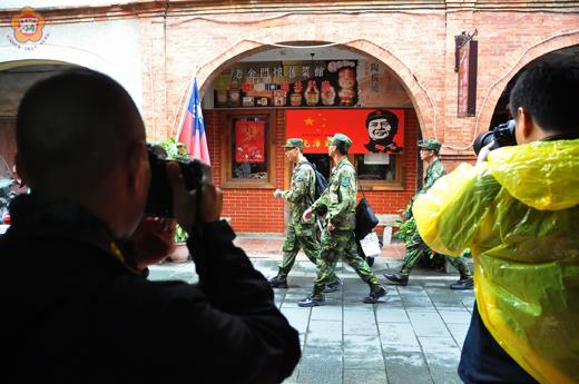 兩岸攝影家合拍活動昨日在金門盛大登場,來自兩岸地區的二十多名攝影名家齊聚島上展開為期二十四小時的連續拍攝工作,一行人踏遍金門鄉鎮取景,拍攝金門特有的島嶼風情,一行人並記錄金門的庶民生活與在地文化,為地區民眾寫下百姓臉譜,而經過一整天的攝影過程後,攝影家們也異口同聲呼籲金門應該要保有自己的特色,諸如軍事標語、人文風情這些都是吸引更多民眾造訪的要素,極待相關單位整建修復。 而為了歡迎這些攝影名家們到訪金門,縣長李沃士、交旅局局長楊鎮浯日昨晚間也在盈春閣熱情款待與會成員,兩人並期望攝影名家們在金門取景攝影後將本地美景推介給兩岸民眾,吸引更多民眾到訪金門旅遊,促進地區觀光發展、增加經濟效益。 據了解,此次參與二十四小時兩岸攝影家合拍活動的人員包括香港中國旅遊出版社總編輯王苗、北京青年報圖片部主任胡金喜、新華社攝影記者劉宇等人,一行人在昨天的攝影活動中走遍地區各大觀光景點,並深入市場街道、舊時巷弄攝錄人文風情,攝影家對金門普遍的觀念是乾淨、整潔,眾人也認為金門的軍事標語、人文風情有保留的必要,更是未來吸引陸客來金旅遊的重要觀光資產。