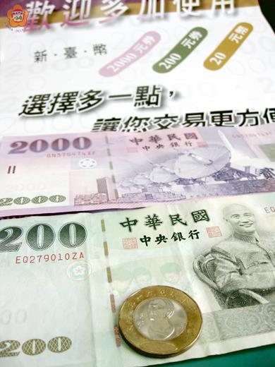 中央銀行每隔一段時間,就會為二千元、二百元的流通鈔券和貳拾圓的流通硬幣打打廣告,希望增加流通量。不過,二千元鈔票若在金門的便利商店使用,店員還是會楞一下子,然後用眼神向同仁求救:這會是假鈔嗎? 這幾種必須打廣告的貨幣中,貳拾圓的硬幣正面圖案有原住民抗日英雄莫那·魯道肖像及霧社抗日紀念碑;反面圖案是蘭嶼雅美族拼板舟。 原住民抗日英雄莫那·魯道去年曾因為電影「賽德克巴萊」賣座再度成為焦點。 蘭嶼島日前因為天秤颱風過境又返回使出「回馬槍」受到重創-看來,它真的需要很多「二千元」、「二百元」或「二十元」的幫助。 不過,這幾種面值的流通貨幣,在巿面上流通時似乎不是那麼受歡迎;金門本地一位做小生意的民眾表示,主要因為容易混淆;此外,二千元的面額太大,常會找不開。 由中央銀行發行的流通貨幣包括:中華民國89年版壹佰圓券、90年版貳佰圓券、93年版伍佰圓券、93年版壹仟圓券、90年版貳仟圓券。 由中央銀行發行的流通硬幣包括:民國七十年發行的伍角、壹圓、伍圓、拾圓、九十年發行的貳拾圓、九十一年發行的伍拾圓。 其中,90年版的貳佰圓券、貳仟圓券、貳拾圓,流通的情況似乎不佳,中央銀行每隔一段時間就會為這幾種貨幣打打廣告;最近一、二個月除了行文各銀行要求鼓勵流通之外,還在廣電媒體上打出了廣告。 臺銀金門分行經理許家明表示,二千元、二百元的流通鈔券和二十元的流通情形的確不是很好,雖然鼓勵大家使用,但臺銀金門分行還是不敢多進,主要是民眾一直用不太習慣。 現行流通貨幣中,貳佰圓券的正反面圖案有綠色的蔣公像和總統府;貳仟圓正反面的圖案有碟型天線、中華衛星一號、櫻花鉤吻鮭和南湖大山;貳拾圓硬幣的正反面圖案包括:原住民抗日英雄莫那·魯道肖像及霧社抗日紀念碑、蘭嶼雅美族拼板舟等。