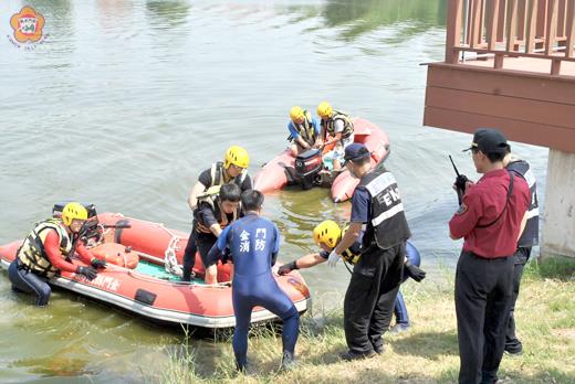 為強化同仁特種裝備器材及水域救援緊急應變能力,提昇靜態水域救助技能,金門縣消防局第一大隊金寧消防分隊及金城消防分隊昨假金寧轄區雙鯉湖舉辦組合演練,情境假設釣客失足落水,出動金寧及金城分隊人員救援,演練過程逼真,透過IRB船艇及相關救生裝備救出溺水民眾,以因應轄區湖庫海邊頗多之特性,藉由此次大隊組合訓練,加強救溺技能及救災能量之整合。 這項演練模擬有兩名溺者因不諳水性,而受困於湖中內;經現場研判:「此地點內為淡水湖庫、雖無暗流,但湖底多爛泥及枯樹,可能危及救災人員和溺者之安全,出動演練器材有拋繩槍、動力橡皮艇、救生袋、救生球、救生圈、救生繩、魚雷浮標等設備。指揮官立即下達指令利用拋繩槍先行拋射救生圈,接續IRB船艇救援」,IRB機動性能強,適合湖庫救援,搭配救生圈及救援浮標做第一時間搶救,可在寧靜水域救援,在搶救災害時更為方便快速,整個演練過程詳實逼真,猶如真實救災現場一般。 消防局大隊長陳國瑋指出,為防止民眾戲水發生溺斃事故,消防局所屬各單位加強各項防溺宣導、巡邏及辦理救生演練等工作,更於海域等危險水域設置防溺警戒站並執行專案巡邏勤務,希望能將民眾溺水事件降至最低。 陳國瑋表示,平時就常督導分隊加強救生訓練,加強救溺技巧,以提升人命救援能力,熟練救災裝備及相關器材使用技能,確保民眾生命財產安全,故救溺技巧之提升需不斷磨練砥礪方能有所改進,訓練是為利於同仁因應瞬息萬變災害現場,經由此次湖庫救溺之大隊組合訓練,加強同仁對於湖庫救援之技能與熟練度,未來將賡續執行各項救災救護訓練,並於相關聚會活動宣導戲水安全,配合單位做好防溺工作,以提昇夏季水上活動安全維護能量,落實維護地區民眾生命財產安全之重責。 消防局提醒愛玩水的民眾,防溺知識一定要有,玩水時仍應隨時提高警覺心,可以選擇設有救生人員執勤的游泳池戲水,盡量避免在危險水域戲水,有豎立危險標語之地區,絕對不可以進入,一定要瞭解自身的體能狀況,須具備自身防護安全及戲水防溺知識,才能確保自身安全。