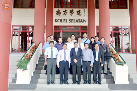 國立金門大學校長李金振率領的東南亞訪問團,續走訪馬來西亞柔佛州新山的南方學院,李金振與該院院長祝家華商談兩校合作及交換學生事宜,並簽署合作意向書。 李金振一行人受到南方學院院長祝家華、資深副院長王潤華、副院長侯亨能、學術研究處安煥然主任等人的接待。南方學院前身為1975年設立的寬柔專科班,1990年改為第一所民辦學院,2012年6月批准升格為南方大學,是馬來西亞華人社會的重大突破。南方學院校訓為「自強不息,厚德載物」,目前有企業與管理、工程與資訊、人文與社會、藝術與設計、傳統醫學與中醫等8大學部,25個課程獲得國家學術資格鑑定機構(MQA)頒發開課准證。 李金振對南方學院能在馬來西亞的華校扮演龍頭角色,將馬來西亞的華文教育從華文小學、獨立中學提升到獨立華文大學,表示敬佩。他希望能促進兩校合作,跟馬來西亞華校系統的龍頭聯繫,相當於連結整個華校系統。 祝家華也表示,該學院曾與台灣高校合辦境外MBA專班,未來與金門大學合辦境外專班或是雙聯學制都是很好的合作方向,也可以考慮兩校交換學生的可行性。 訪問團也在拿督陳成龍博士的引導之下,前往居鑾與當地金同廈會館成員聯誼餐敘。李金振說,拿督陳成龍對金門大學設立很支持,除了改名大學時捐款200萬元,今年7月底拿督也主動親赴峇株巴轄,接待、關懷遠赴峇株巴轄《華仁中學》服務的金門大學《海外僑校志工團》,特於此次拜訪中致贈感謝狀與紀念品。 陳成龍博士表示,新山為柔佛州之首府,鄰近金同廈會館所在地居鑾,多次向政府提出大吉隆坡的概念,希望儘速發展大眾運輸系統(MRT)連接新加坡到新山,與新山的輕軌系統連結,提升新山的環境與發展,未來十年新山的人口將由150萬人成長至300萬人,也會為南方學院帶來國際學生,促進南方學院的發展。 訪問團也拜訪居鑾中華中學,由該校校長廖偉強導引,參觀運動場館、圖書館等教學設施,李金振對該校展示的學生建築模型作品很感興趣,表示來年可以派出建築系學生於暑假期間擔任志工,帶領該校學生辦理建築營隊活動,加深兩校友誼。 訪問團也拜訪新加坡太平船務公司董事長張允中僑領,張允中表示,金門大學辦得很好,未來五年,會持續捐贈金門大學每年200萬元。李金振說明金門大學之金沙校區教學大樓將命名為「張允中大樓」,目前已有海洋事務研究所及海洋與邊境管理學系進駐,未來將發展為社會科學院。