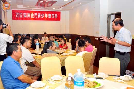 「廈金情深-最戀金門」兩岸青少年暑期夏令營昨再度登場,第二梯次三十六名學員們在廈門金胞聯常務副會長李淑萍的帶領下,抵達金門展開四天三夜的活動行程,縣府昨晚設宴盈春閣餐廳歡迎學員們的到來,並希望學員們藉此機會多認識家鄉風光,感受島嶼生活的美好。 兩岸青少年夏令營學員們是在昨天下午二時三十分,經小三通返抵家鄉金門,下船後隨即赴金水國小、得月樓、出洋客故事館及翟山坑道參訪,認識金門的文化采風。晚間則接受縣府的邀宴,在盈春閣享用美味的家鄉菜。 為歡迎金門子弟的歸來,縣府主任秘書盧志輝昨晚特別前往餐會,認識這些來自廈門的學員們,並向他們介紹金門概況。盧志輝表示,金門不同於廈門地區,有許多地方值得深度探訪,他期望學員們能藉此機會欣賞地區景色,瞭解金門僑鄉、戰地及閩南文化。 除了第一天的行程外,青少年暑期夏令營還進駐金門大學宿舍,並在救國團輔導員的帶領下,攻頂太武山、走訪洋樓、坑道等地,進行闖關遊戲、海洋活動等行程,一行人預計將於八月廿日賦歸、返回廈門。