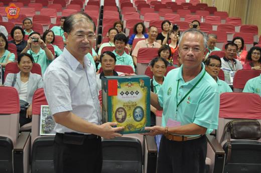 由教育局辦理的「2012攜手故鄉行-兩岸金門青少年暑期夏令營」昨日盛大登場,來自兩岸三地的學員們齊聚縣府觀賞縣政簡報,瞭解故鄉發展現況與文化特色,一行人受到副縣長吳友欽等人的熱烈歡迎,學員們並拍照留念,為此次返鄉之行留下見證。 此次的攜手故鄉行-兩岸金門青少年暑期夏令營活動是在昨天早上十時三十分揭開序幕,來自福建地區、台灣各地的學員們分別乘船搭機抵金後,依序趕赴縣府教育局進行報到,並赴多媒體簡報室觀賞縣政簡報。副縣長吳友欽、縣議員林孫全會同教育局長李再杭、主任督學陳金文歡迎學員返鄉。 對於這些來自對岸大陸、台灣地區的二、三代金門子弟回遊故鄉,副縣長吳友欽在致詞時表示,金門擁有豐富的歷史文化與古蹟,綠意盎然、環境優美更是讓許多廈門民眾企羡無比。更有大陸遊客認為金門雖然落後廈門沿海城市三、五十年,但金門擁有的卻是廈門三、五百年後都無法得到的自然環境與文化資產,他呼籲到訪的學員應該趁此機會多認識自己的故鄉。 帶隊到訪的福建省金門同胞聯誼會常務副會長黃建業也指出,此次兩岸青少年暑期夏令營雖然已是第三度舉辦,但本屆活動參與人員包含兩岸三地的學員,有來自福州、廈門的金胞聯二、三代,也有來自高雄、台中等地的金門鄉親子弟,成員多達七十人之多,規模廣度可說是前所未有,他期望縣府每年均能舉辦類似活動,號召更多的金門鄉親回鄉探訪,聯絡各地金門同胞的情誼。 會後黃建業也特別致贈以書法篆寫的「尋根」予副縣長,表達兩岸三地金門子弟回鄉尋根、飲水思源的崇敬心情,雙方並合影留念,為此次返鄉行留下影像記錄。 據瞭解,教育局辦理的兩岸金門青少年暑期夏令營共有五天四夜的行程,參與學員來自大陸、台灣、金門三地,一行人將以學生交流聯誼參訪遊覽地區名勝古蹟,並配合探索教育、競技活動認知金門文化,走訪父母親及長輩口中可愛美麗的金門故鄉。