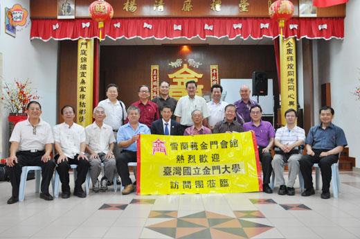 國立金門大學校長李金振率領學校主管組成的東南亞訪問團,首站拜訪馬來西亞巴生雪蘭莪金門會館,李金振感謝僑領捐資興學的回饋家鄉義舉,也向鄉僑說明金門大學積極規劃預計於明年招收境外僑生專班,與本地大學合作推動雙聯學制,讓華僑子弟能以兩年在本地讀書、兩年赴金讀書的2+2方式取得雙聯學位。 李金振一行人抵馬來西亞,隨即展開訪問的行程,拜訪馬來西亞巴生雪蘭莪金門會館,拿督呂慶安與黃清河等鄉賢代表會館表示歡迎之意。李金振代表金門大學致贈拿督呂慶安感謝狀、紀念旗、家鄉土產等,並向鄉賢們報告金門大學發展現況。 李金振指出,在招生方面,金門大學已獲得教育部核准將於102年起招收護理系學生,這是金門地區醫療發展的重要里程碑。同時,今年新生的招生結果非常理想,總計新生人數超過一千人,為金門大學注入新活力。 李金振並對雪蘭莪金門會館成立教育基金會表示感謝。李金振說,該基金會在拿督呂慶安的號召下,共募集馬幣100萬令吉作為獎助僑民子弟返鄉就讀大學之經費,金門大學擬共襄盛舉,未來將興建國際學舍作為僑生與國際學生來校就讀之住所。 李金振感謝拿督呂慶安於去年返鄉參加世界金門日活動,到學校捐資200萬元,為此,該校也將金門大學理工大樓演講廳命名為「呂慶安演講廳」,表揚僑領的熱心鄉梓教育。
