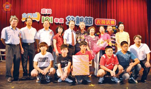 縣府昨舉辦一年一度父親節慶祝活動,由縣長李沃士公開表揚全縣二十五位模範父親及四十位新好爸爸,或夫妻同台,或三代同堂,或祖孫一同前往接受表揚,加上精采的表演,場面十分溫馨感人。縣長李沃士以感恩、分享與孝道為活動做註解,也祝福全天下爸爸們佳節快樂。 金門縣政府一○一年度模範父親暨新好爸爸表揚大會,昨日上午十時起假社會福利館演藝廳舉行,縣長李沃士、主任秘書盧志輝、議員唐麗輝、金城鎮鎮長石兆日、金城鎮代表會主席陳天成、金湖鎮鎮長蔡西湖、金沙鎮鎮長陳昆第、金寧鄉秘書傅仰鑫、烈嶼鄉鄉長洪成發、社會局局長方天吉、專員顏恩威,以及六十五個獲獎家庭成員一同出席觀禮。 典禮在金門土風舞協會一曲「燈會」演出中揭開序幕,由縣長李沃士依序頒獎表揚來自五鄉鎮二十五位模範父親以及四十位新好爸爸。中間穿插精采舞蹈演出,包括由金門縣棠風舞蹈協會演出「掀起你的蓋頭來」、「沂蒙春色」,金門縣舞蹈協會表演「捷舞」、「拉丁舞」,為活動帶來一波波高潮。 縣長李沃士在致詞時表示,每一個父親無怨無悔為家庭付出,營造美好的家庭,成為一股社會安定的力量。透過活動分享獲獎的榮耀外,也勉勵年輕人以此為榜樣,並且要時時感恩,謹記孝道倫理,及時行孝。 議員唐麗輝表示,許多模範父親與她父親一樣,所經歷過的生活苦難,無法用言語形容,但是點滴在心頭;希望每一位新好爸爸感受此精神「歡喜做、甘願受」,祝賀爸爸們佳節快樂。 金湖鎮鎮長蔡西湖代表五鄉鎮長上台致詞時表示,成長過程中受到父親的嚴格管教,長大後才了解,父親的教誨也代表著深深的期許;恭禧六十五位獲獎者,這是肯定和榮耀,也藉此向所有爸爸們致敬。 金門縣政府表示,每一位父親終年為家庭和社會辛勞,透過表揚活動,彰顯父愛之偉大,宣揚家庭倫理之重要,期藉以為社會樹立良好典範,更作為年輕一代學習的標竿。 一○一年度模範父親暨新好爸爸表揚大會在歡喜切蛋糕中畫下圓滿句點,獲獎者及家屬透過餐會聯誼,提前共渡八八節。 昨日獲獎的模範父親暨新好爸爸共六十五名,包括,陳水仲、唐勇山、許永成、黃永安、盧清凱、洪長渠、蔡世湖、歐炳昌、楊淑欽、董水河、蔡顯思、王朝固、呂炳忠、謝永和、黃維芳、陳諸侯、蔡天傳、蔡聰敏、李海樹、周炳泮、宋鐘、翁江水、許水盤、林水綠、洪振華等二十五位模範父親。 另包括四十位新好爸爸,周祥在、陳凌龍、歐陽儼讚、許丕湖、唐文宗、陳振圖、邱嘉民、王蓁辰、盧禮樑、陳建斌、葉福林、邱永世、王菘逸、洪君烈、呂宗興、蔡其雍、陳德周、陳詩榮、陳建中、呂立偉、卞化、呂正國、鄭正志、何仁楚、楊增祺、李仁在、吳福裕、蕭偉權、李振銘、許乃上、楊振嵩、林振雄、許長安、翁文陣、許秉雄、蔡水國、陳全成、林長衡、洪子儀、林榮啟。