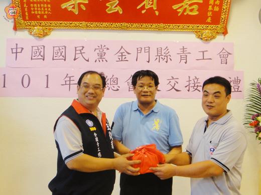 中國國民黨金門縣青工會昨日舉行101年度總會長交接典禮,在國民黨金門縣黨部主委黃原亮監交下,縣議員李誠智「接棒」青工會總會長。金門縣長李沃士肯定青工會是一股年輕的力量,對社會有正面的形象,希望青工會能號召更多青年朋友加入青工陣營,以青年人的活力和熱情,為金門的發展和建設,貢獻一份青年人的力量。 金門縣青工會於日前舉行101年度會員大會,選出新任總會長李誠智,並於昨日上午舉行交接典禮,包括有:金門縣長李沃士、福建省政府秘書長侯全寶、金門縣環保局長楊世宏、金門縣議會議員許玉昭、林金量、周子傑、金城鎮長石兆瑉、金城鎮代表會主席陳天成、金酒公司董事長李文選、金門縣信用合作社理事主席陳松泉等來賓到場道賀。國民黨中央組發會青年部主任林奕華及台北市青工會總會長曾文培也專程來金,帶來黨中央的賀意。 交接儀式,由原任總會長王從武將印信交予新任總會長李誠智。監交人黃原亮感謝王從武二年來的努力與付出,亦期許金門縣青工會在李誠智總會長的帶領下,有更好的服務成果。 中央青年部主任林奕華也讚許王從武任內的表現,她說,先前國民黨的總統與立委選舉,都可以看到金門青工的輔選佳績,她也對李誠智寄予厚望,期許他未來能率領金門的青工伙伴持續來努力,為黨、為國來克盡心力。 李誠智也是現任議員、浯島城隍廟管理委員會總幹事。他感謝地區青工伙伴的支持、鼓舞,讓他有機會接任青工會總會長,未來會結合青工伙伴的智慧和熱忱,善盡職責向中央爭取攸關青年政策,持續推動社會服務,回饋地區。 黃原亮指出,國民黨相當重視青工區塊,依規定青工總會長為縣黨部青年義務副主委;中央組發會主委已於7月20日頒發青年義務副主委聘書予李誠智。