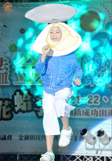 花蛤仙子傳承花蛤小天使!花蛤季第一屆「花蛤小天使」選拔昨天在成功海邊登場,結果是由五歲的李怡農奪魁;他是第四屆「花蛤仙子」李依文的學生。 在比賽中獲「花蛤小天使」第一名的小朋友是7號的李怡農;獲第二名的是19號的林昀;獲第三名的是8號的呂淯甄。他們都由主辦單位金湖鎮長蔡西湖為他們加冕。此外,18號的徐佩慈(一一八票)及1號的莊雨璇(一一六票)獲得了臨時增設的超人氣獎-他是由在場民眾選出來的。 前三名除了頒發獎狀外,還有獎金-第一名獎金五千元;第二名獎金四千元;第三名獎金三千元。超人氣王各獲彩品一份。所有參賽者都獲得一千元現金與一千元等值彩品。 這場選拔活動,匯聚了天真、可愛、活潑、俏皮、酷炫、帥氣、美麗、動人的表演;評審認為是精彩難評的選秀,而且一個比一個厲害。 昨天的選拔活動由果凍姊姊主持;應邀演出的表演團體有:吳淑鴛領導的中東肚皮舞團、金門高中熱舞社。名次出爐之後,由金湖鎮長蔡西湖為前三名的小天使頒獎。他表示,這個活動今年是第一次舉辦,顯示年年都在求創新。 擔任評審者為台灣那魯灣歌舞劇團指導老師林宣汝、屏科大舞蹈老師徐宏瑋、化妝師楊一林(曾參為《痞子英雄》擔任化妝師)。 第一屆「花蛤小天使」選拔活動原本應該在七月二十二日舉辦,後來因雨改期,延到昨天(七月二十七日)重新比賽。參加者年齡都在三到八歲之間。 改期之後,原本報名的二十六個小朋友有五個無法參加;因此,昨天登場的小朋友共有二十一人。昨夜,他們分成四組依序亮相。 第一組:1號莊雨璇-表演「豆花妹」的舞蹈,展露了小性感及大可愛。2號邱瑤-化身粉紅迷人的的蝴蝶表演跳舞。3號陳鈺晞-身穿粉紅洋裝,表演唱歌,做出祈禱的動作。4號蔡聿純-表演跳舞(〈NO BODY〉和〈你是我的花朵〉);她希望成為金門觀光的最佳代言人。 第二組:5號王鈞翔-表演跳舞加變裝;動靜之間如脫胎換骨。6號王潔云-表演跳舞;評審楊一林問她的妝扮是否是機器娃娃。7號李怡農-表演跳舞;他的面具是花蛤造型,一掀一蓋,露臉遮臉,非常巧妙。8號呂淯甄-表演國標舞,評審說很有架勢。 第三組:9號陳韋伶-表演邊彈邊唱。10號呂品勳-表演模仿及跳舞(大嘴巴的沒禮貌),還有金門童謠(歡迎大家來金門,飲酒七投呷貢糖)。11號楊韻丞-表演跳舞(大小姐的舞),還請姐姐上台助陣。12號陳雨婕-表演唱歌。 第四組:13號陳姿雅-表演小提琴。14號郭靜茹-表演印度的肚皮舞。15號倪廷安-表演少林拳中的「五步拳」和「八步連環拳」。16號李珮馨-缺席。17號翁語蓁-原本要表演〈人之初〉朗誦;不過後來只跟果凍姐姐「咩咩叫」,但還是可愛十足。 第五組:18號徐佩慈-表演跳舞(幸福的孩子愛唱歌)。19號林昀-表演唱英文歌及跳自編舞蹈。20號陳信傑-表演「跳太子爺」(三太子舞步)。21號黃世語-表演唸唐詩。22號楊謹芯-表演講故事(蚊子打敗獅子)。 金湖鎮首次舉辦花蛤季是在民國九十三年,從「2004金湖鎮海灘花蛤季」到今年的「2012金湖鎮海灘花蛤季」,已經歷時九年;今年首次有「花蛤小天使」的舉辦。 花蛤季的特色之一就是從「2006金湖鎮海灘花蛤季」開始引進選美活動,舉辦了第一屆「花蛤仙子」選拔活動;如今在「2012金湖鎮海灘花蛤季」又有了第一屆「花蛤小天使」的選拔活動。 根據主辦單位金湖鎮公所的說明,「花蛤小天使」選拔活動的舉辦,是為了:推廣金門休閒活動,傳承在地特色,代言推廣金門觀光產業,宣導愛護地球,創造深度旅遊話題。 「花蛤小天使」徵選的對象為三到八歲的小朋友(2004/07/至2009/07/期間出生)。徵選的特質如下:有強烈的表現慾望,任何事物都無法阻擋他表現自已。具有創意、活潑、陽光、搞笑、自然、可愛、健康等特質。有個人特色,能代表金門花蛤小天使的健康形象任務! 甄選的內容如下:一、大方、活力擺出一個花蛤天使的代表動作。二、勇敢說出歡迎大家來金門遊玩的邀請詞(內容可自編)。三、表演一項特殊才藝:魔術、唱歌、模仿、搞笑、講笑話、跳舞等任何才藝,只要自認有特色的才藝表演都可大膽的秀出來(三分鐘為限)。 評分標準如下:一、自我介紹-佔總成績20%。二、個人特色-佔總成績35%。三、才藝表演-佔總成績35%。四、歡迎詞-佔總成績10%。