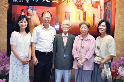 與大師合影,機會難得。 2012作家撒野‧文學迴鄉系列演講第四場次週末在金門縣文化局舉辦,由擁有無數忠實讀者的詩人余光中以「島嶼與寫作」為題開講,與讀者聽眾近距離相會。 當天也在文化局舉辦展覽的張富枝、張淑蘭兩位畫家,趁著金門縣長李沃士和大師余光中偕夫人將步入會場之際,拍下這張難得合影留念。