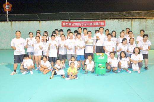 由金門縣網球運動委員會辦理的二○一二網球夏令營,昨日晚上舉行結業典禮,金城鎮長石兆瑉親自前往主持初級班學員結業儀式。數日的夏令營,讓參加的學員們紛紛表示獲益良多,網球技巧進步神速。 該夏令營活動是由金城鎮公所主辦,同時為配合行政院體委會「打造運動島計畫」,於七月廿三至廿七日委託金門縣網球運動委員會於金門縣立網球場辦理2012網球夏令營,結訓典禮於昨天晚上八時三十分假金門縣立網球場舉行,由石兆瑉主持並頒發結業證書予初級班學員。另頒發感謝狀予第一代書事務所及台灣房屋負責人李根遠,以感謝其慷慨捐贈金門網球運動委員會一台網球發球機。 石兆瑉表示,金門發展運動的條件相當好,每年各鄉鎮也都會辦理各項運動競賽,而金城鎮辦理網球夏令營,就是希望向下紮根,只要在活動中有學員從中獲得運動樂趣,那這一切便是值得的。 金城鎮公所表示,為推廣地區網球運動,每年均委託網球運動委員會於暑假期間辦理夏令營,並邀請專業教練蒞金指導,提供學生及地區民眾一個學習另類運動技能的活動。 值得一提的是,今年訓練營的教練群中,首度有金門籍教練投入教學工作,分別為就讀台灣師範大學二年級的薛郢翔及台北體育學院三年級的張容禎,薛郢翔曾獲得台中市市長盃排名賽十四歲甲組冠軍。張容禎曾獲新竹市市長盃網球錦標賽冠軍,目前為新竹市重點培養選手。金城鎮鎮長石兆日也特別感謝二位選手願意返鄉協助推展網球運動。 閉幕式中,金城鎮鎮長石兆瑉除勉勵學員認真學習外,並致贈感謝狀感謝予李根遠,感謝其為增加訓練營訓練成效,慷慨捐贈網球發球機。