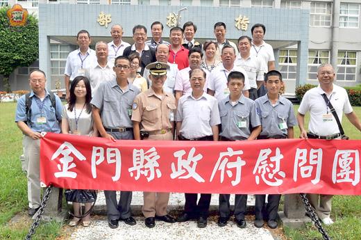 縣長李沃士昨日率隊,赴台前往左營、龍泉、官田、大內各訓練中心,慰問九十二位金門籍役男。縣長李沃士對金門子弟入伍服役備極關心,致贈個人慰問金,部隊加菜金及紀念酒,感謝各訓練中心對金門子弟兵的照顧。李縣長告訴役男,把當兵視作人生重要的磨練機會,以不斷學習的精神,為踏入社會做足準備,開創美好的人生。 金門縣政府昨(二十四)日起組團赴台各訓練中心,展開一連兩天的役男慰問行程。由縣長李沃士擔任團長、民政局局長翁伸金擔任副團長,成員包括機要秘書鄭志傑、金湖鎮鎮長蔡西湖、金沙鎮鎮長陳昆第、金沙鎮代表會主席王秀玉、金寧鄉鄉長陳成勇、金城鎮鎮長石兆日、金城鎮代表會主席陳天成、烈嶼鄉鄉長洪成發、烈嶼鄉代表會主席洪若珊、軍友社金門連絡組長盧清土等二十人。 縣長李沃士所率團隊,首日依序抵達左營海軍、屏東龍泉、台南大內、台南官田等訓練中心,慰問金門籍入營新兵,受到左營海軍新訓中心指揮官林中行上校,屏東陸戰旅旅長樊傳聲上校、政戰處長林權宏中校、官田營區張英仁上校、大內營區黃胤荃上校等歡迎。 縣長李沃士表示,炎炎夏日入伍,到各部隊訓練十分辛苦,特別組團到台灣各訓練中心,關心縣籍役男服役情形,也代表金門鄉親轉達關懷之意。所到之處,不論是海軍、空軍或陸戰隊,役男們個個精神抖擻、面帶笑容,令人感到放心;黝黑皮膚更令人嗅到男子漢的氣息,感謝各訓練單位對金門籍役男的照顧,也期勉役男掌握學習機會,讓自己從當兵的磨練中「轉大人」,為踏出社會做足準備。 李縣長也以過來人身分分享服役心得表示,當兵是人生重要的歷程,秉持積極正面的態度,從磨練中不斷學習成長,它將會是人生一段最值得驕傲、最有價值的回憶。 此次五鄉鎮長全員到齊,除致贈慰問金外也和役男面對面座談,瞭解軍旅生活適應情形。屏東縣市金門同鄉會總幹事楊忠永、榮譽理事長鄭永富、副總幹事林文泰、高雄市浯江金門同鄉會理事長楊維居、高雄市金門同鄉會理事長翁明祺、本報南區特派員王世勤、南部服務處主任蔡忠盼也陪同前往。 縣長李沃士叮嚀役男,持續發揚金門子弟的樸實與堅忍特質,如遇有問題,要向部隊幹部、縣府民政局、縣府旅台鄉親服務處或撥打082-320225尋求協助。 根據金門縣政府民政局說明,目前金門籍子弟兵,在台灣各訓練中心服役者約一百四十餘人。金門各界在結束首日左營、龍泉、官田、大內慰問行程後,今(二十五)日將北上前往嘉義中坑、台中成功嶺慰問縣籍役男,下午搭機返金。
