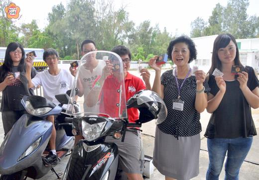 公路總局臺北市區監理所金門監理站昨天舉辦了「駕照成年禮」活動,讓新領駕照的騎士們宣誓遵守「駕照成年禮」誓詞,希望一起承擔社會責任,共同為維護交通安全盡一份心力。 馳過畢業的季節,駛向成年的暑期,以機車駕照加冠,用道安誓詞加笄!對剛滿十八歲的青年男女而言,眼前最實用的成年禮物就是擁有一張機車駕照在手! 高中、高職畢業典禮陸續之後,年滿十八歲的青年增多,機車考照也進入了旺季;臺北市區監理所金門監理站於昨天辦理了「駕照成年禮」活動,讓青年人建立遵守道路交通安全的正確觀念,了解駕駛人應承擔的社會責任,希望藉由安全駕駛的知識和技術,減少交通事故的發生。 「駕照成年禮」是由站長梁惠群主持;她希望通過成年禮的青年騎士們在駕車時,不但要注意維護自己的安全,還要注意維護別人的安全! 昨天,所有考取駕照的新鮮人,於完成考駕照之後,先接受學術科的安全講習宣導,並宣誓遵守「駕照成年禮」誓詞;誓詞的內容就是要為維護交通安全共同盡一份心力;最後再由站長梁惠群頒發駕照並致贈交通安全宣導品。 昨天參加考照的青年男女共有十人,有七人通過考驗領取到了駕照;他們是:林思豪、熊瑋弘、周毓庭、曾亭瑗、蔡祈緯、呂瑋霖、黃思煜。 其中,曾亭瑗即將就讀金門大學,蔡祈緯已錄取聯合大學,考取駕照之後,他們將用機車代步上下學。周毓庭即將就讀大同技術學院;他說:有了駕照就不怕警察攔檢了。熊瑋弘將繼續升學,他希望在暑假打工,機車成了打工的配備。