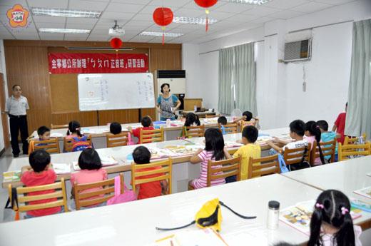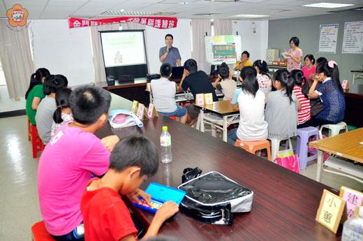 由家扶中心舉辦的暑期課輔班昨日於金城鎮公所登場,為地區單親弱勢家庭、受扶院童進行課後輔導及才藝教學,昨天並安排兒保小學堂及法律講座,學童熱烈互動、搶答,學習各種寶貴的生活法律小常識。 家扶中心這項活動將執行到八月十六日止,每週三、四、五分上、下午時段,於金城鎮公所五樓會議室舉行,參與暑期輔導者包括早上班的受扶院童,以及下午班的弱勢單親家庭。在家扶中心的貼心安排下,邀請到地區的家扶志工擔任課輔工作,這些來自國、高中的愛心志工們耐心教導學童們識字寫作,學習剪貼、圖畫等藝文創作。 為了讓學童們學習多元知識,昨天上午安排社工員傅媛蘭進行「兒保小學堂」講座,下午三時許,更邀請到金門地方法院書記官到場開講,教授學童們各種法律常識。透過簡報的放送及法律案例問答與解說,讓小朋友們認識偷竊、詐欺及各項不法行為,培養學童們的法律素養及知識水準。 家扶中心主任林玉真指出,家扶中心每年寒暑假均會舉辦課輔活動,過去都由大專院校的愛心志工協助幫忙,今年則以國、高中志工居多,這些志工熱心公益、犧牲奉獻,無償付出的精神令人感動,身體力行教育工作更是受扶院童的絕佳範例,讓院童感受社會溫暖及大眾的關心。