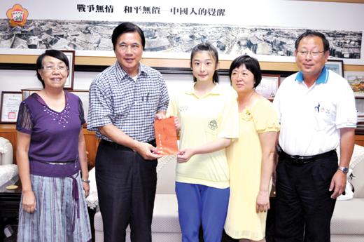 自小在單親家庭中長大,自我鼓舞,養成樂觀進取的人生觀;在校學習成績總是名列前茅,更是運動健將,校內校外得獎無數。2012總統教育獎(國中組)得主金沙國中林倚如同學,昨日由縣府主任秘書盧志輝代表縣長李沃士接見祝賀,並致贈程儀壯行;盧志輝期勉林倚如要更加努力,完成做一個有正義感的行政警察夢想! 總統教育獎頒獎典禮將於明(廿七)日舉行,由總統馬英九親自頒獎表揚,今年的總統教育獎得獎人數,大專組六名、高中職組十二名、國中組十七名、國小組十七名,總共五十二人。其中,林倚如同學是金門地區唯一得獎人,以處於逆境且特殊才能、出類拔萃獲得推薦得獎的殊榮,她說,將與幫助過她的人,分享總統獎這一份喜悅和榮耀。 縣府主任秘書盧志輝是於昨天上午十一時,在縣長室代表李縣長接見林倚如同學,陪同的有林媽媽和沙中校長何莉莉、教育局主任督學陳金文等人。盧志輝稱讚林倚如獲得總統教育獎非常不容易,也感謝林媽媽含辛茹苦扶養教育,以及師長諄諄教誨,讓她能夠健全成長和得獎。 有志氣的林倚如說,未來將以開朗積極進取的態度,面對每一次挑戰和每一天,一步一步循序漸進的往自己的夢想邁進。盧志輝在致贈程儀後,他希望林倚如今後更將努力,祝她夢想成真,完成做為一個有正義感的警察,為人民和社會服務。 林倚如在校學業成績和特殊才藝受到肯定,她無論國語文競賽、網路海報繪圖競賽、田徑比賽、管樂合唱團、舞蹈,均有卓越的表現,曾獲全縣作文賽第三名、中小學田徑賽跳遠摘下國女組第一名。她說,總是勇敢開朗的面對困難、絕不輕易放棄;而成長過程的種種經歷,「其實我已經很幸福了」,未來還需要自己更努力、更堅強、更獨立的走下去。 總統教育獎得主林倚如將於今(廿六)日由沙中校長何莉莉陪同搭機赴台北,並將於明日接受總統馬英九頒獎表揚。她說,目前最重要的就是認真準備好基測,爭取好成績進入高中就讀完成學業,朝著自己設定的目標努力邁進、為夢想努力。 在學校師長給林倚如期許的話說,在同學心中是好榜樣、師長心中的好學生,凡事盡力用心,認真進取且寬容;尤以在功利社會中,林倚如的友愛友善的學習態度,與謙虛有禮的精神,實為可嘉。 縣府教育局表示,總統教育獎用意在鼓勵能以順處逆,發揮人性積極面,力爭上游,出類拔萃,具表率作用的大專及中小學生,以彰顯國家對學生優良品德及特殊才能的重視。
