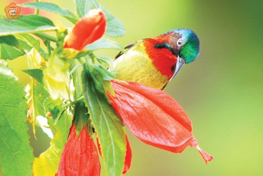 採花小精靈現身!金門地區近日又見叉尾太陽鳥蹤跡,本地鳥友懷疑該鳥種已在金門落地生根、成為本地留鳥,這種身軀嬌小、形甚可愛的鳥兒喜歡在花叢中採集花蜜、捕食小蟲,喉部上胸為深緋紅色羽毛,還披著一頭金屬綠的亮眼頭羽,堪稱是金門鳥類中的採花小精靈。 據相關賞鳥手冊記載,大陸華南一帶叉尾太陽鳥為普遍留鳥,在廈門島內的公園也常可見到這種鳥類,但叉尾太陽鳥由於身長僅九公分左右,混雜在綠繡眼中極難觀察得到,因此過去在金門的發現記錄並不普遍,多數集中在蜜源缺乏的冬季,夏季則因百花盛開、鳥點分散,因此缺乏夏季的觀察記錄。 叉尾太陽鳥在金門曾有多次的發現記錄,但以往的記錄均集中在冬季,但長期於本地進行鳥類觀察的社群網路金門飛羽觀測站發現,近來已可在金門國家公園管理處、植物園、林務所等地看見叉尾太陽鳥現身,站內網友認為這種可愛的鳥類應該歸屬金門留鳥,而非以往記錄的過境鳥種。 這種可愛的鳥類擅長以長舌吸食花密,而這些發現太陽鳥的地點均種植了眾多的開花植物,才會吸引太陽鳥前往覓食,下次地區民眾前往這些地點賞花遊玩時不妨細心觀察,或許你會發現這亮眼的採花小精靈! 叉尾太陽鳥小檔案:(資料來源:台灣野鳥圖鑑)科屬:雀形目太陽鳥科學名:Aethopyga christinae英文名:Fork-tailed Sunbird體態及生活習性:身長約9厘米,雄鳥頭部呈金屬藍綠色,喉和上胸為深緋紅色,嘴部向下彎曲。雌鳥和雛鳥上體綠色,頭頂灰色,腰淡黃色,下身偏黃色。常於花間覓食,鳴聲高音響亮。棲息在森林及林間空地上,常於樹的高處或花朵間取食花蜜,偶食昆蟲,有時則飛在半空取食,分佈在中國南部和越南北部。