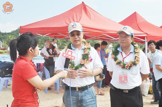 由金門縣政府與廈門市政府合辦的第四屆金廈海峽橫渡活動,152位華人菁英泳士,以「兩人一組」的接力方式,合力挑戰長約7公里的海上長泳。金門縣長李沃士全程見證泳士們挑戰金廈海域的壯舉,李縣長也希望透過泳渡的體育活動,讓兩岸人民泳出健康,也泳向和平。 縣長李沃士和廈門來賓在烈嶼鄉雙口海灘為此次橫渡活動鳴槍,並乘搭小艇「直航」廈門椰風寨,在椰風寨的海灘迎接選手上岸並祝賀。李縣長也頓時成為兩岸媒體爭相採訪的焦點人物。 李縣長說,金廈近在呎尺,年輕泳將們有如海上的蛟龍,充滿活力,勇敢挑戰金廈海域,他很期待泳士們屢創個人佳績,締造金廈海峽橫渡活動的新紀錄。 李縣長表示,金廈海域過去一段時間是屬於管制的海域,同時也有兩岸「中線」的概念存在,但透過連續四屆的金廈海峽橫渡活動,打破海域的「禁區」限制,金廈海域已經成為可以休閒運動的海域,橫渡活動也是兩岸體育界的指標性體育活動,成為兩岸交流最實際的象徵,更深具意義性。 李縣長表示,這幾年來,兩岸在文化、宗教、觀光、民俗技藝等各方面的交流互動,不僅愈來愈密切,也都朝向良性的發展,金廈小三通往來愈來愈方便,又開通夜航,金廈之間,已成生活圈模式,金廈橫渡活動,具旅遊發展效益,對兩地發展皆有助益。