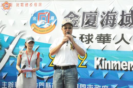 2012金廈海域泳渡│全球華人接力公開賽昨日上午在小金門雙口海灘鳴槍下水,來自兩岸四地泳將在陽光明麗下,展開長達約七公里海上長泳競技,比體力、比耐力和速度,在海上一較高下。金門縣長李沃士在開幕典禮致詞,許下打造金廈兩岸知名海域運動的心願;他也與台上貴賓說一句祝福泳將的話,李縣長說:「堅持到底,一定成功,大家加油!」 從2009金廈海域泳渡,跨越到2012全球華人接力公開賽,李縣長表示,只要泳技棒、體力好,皆可報名參加!他表示,雙人接力競賽型的賽事活動,去年的成績令人非常的滿意,因此更加期待具有特殊意義的泳渡,成績一年比一年更加亮眼,也希望明年的第五屆金廈泳渡賽事會更好。 於過去六十年前,金廈之間存在著海峽中線,不敢存望著從金門游到廈門,或是由廈門游到金門,李縣長表示,但在2009年,金廈兩地政府共同努力之下,舉辦了首屆金廈海泳破冰之旅;而且也開通了小三通,每天有四十幾個航班,往來及穿梭於海峽中線,增進金廈兩岸交流及合作。 李縣長也許下心願說,希望把握金廈泳渡的機會,打造兩岸知名的海域運動,並有更多的全球華人參加,共襄盛舉。他表示,今年也有遠自加拿大、東南亞華人報名,但因未達基本成績門檻未能參與盛會。 他說,尤以行政院僑委會副委員長任弘也應邀參與盛會,也讓更多旅居各地華人知道和參與,期待明年有更多人參加金廈泳渡活動,也預祝泳士自我創造顛峰、游出健康和幸福,以及游出兩岸和平、繁榮。 李縣長和在台上的每一位貴賓,都對參賽泳士說一句祝福的話,他說,堅持到底,一定成功,大家加油!金沙鎮長陳昆第說,游出健康、游出和平。烈嶼鄉代會主席洪若珊說,加油!廈門市體育局副局長傅曉春說,祝泳渡取得圓滿成功。成人泳協會總會長劉建廷說,努力不懈、永不放棄。廈門市體育局局長余振杰說,全球華人團結勝利。 至於僑委會副委員長任弘說,乘風破浪,團結合作。監試委員周陽山說,泳渡金廈,勝利成功。典試委員胡幼圃說,金廈同門,圓滿成功。烈嶼鄉長洪成發和其他的人也說,泳出新高度、泳出新成績;泳出健康、泳出幸福,圓滿、順利、平安,泳向成功! 金門致力發展觀光,也是縣政府重要施政主軸,李縣長不忘行銷金門,他表示,金門(金城)今年榮獲觀光局的十大觀光小城,也獲評為幸福城市的一名,歡迎大家來到金門! 烈嶼鄉長洪成發表示,小金門好山好水,與廈門遙遙相望,希望中央給烈嶼鄉政策,讓廈門旅客可以直接到小金門旅遊,帶動地方的觀光發展及繁榮。 僑委會副委員長任弘說,金廈泳渡最艱苦的路已走過,也是擴大參與的時機;未來,僑務委員會將鼓勵全球華人泳士踴躍參加,共襄盛舉。他指出,過去在金廈之間是風高浪急,如今是風平浪靜;金廈是交流之門,也是和平之門,希望泳渡活動創造更好成績,帶出和平與幸福。 廈門市體育局局長余振杰說,期待金廈泳渡,越辦越好、越辦越成功,合作越來越緊密;也盼金廈將在各方面加緊交流、合作,共創發展繁榮。