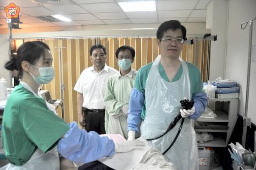 醫生動病人不動!為減少金門鄉親等待大腸鏡檢查時間,行政院衛生署署立金門醫院,利用週末假日一連兩天商請台北榮總醫師林資琛、技術員陳維慧,抵金為病患執行大腸鏡檢查,期能減少民眾長時間等待之焦慮與不安,紓緩醫生長時間檢查之壓力、提昇服務效率,創造病人、醫療及醫生之三贏。 根據統計,因為飲食西化等因素,國人罹患大腸癌之比例有向上攀升情形,行政院衛生署國民健康局推動大腸癌篩檢,針對五十至六十九歲之成人,提供兩年一次免費糞便潛血反應檢查;倘若檢查結果糞便潛血反應呈陽性,則建議進一步接受大腸鏡檢查,進行鑑別診斷。 行政院署立金門醫院指出,醫院日前共累積八十餘位病患等待大腸鏡檢查,為貫徹醫生動病人不動之服務宗旨,減少病患長時等待之焦慮和不安,特別於七月十四日、七月十五日兩天,透過 IDS金門醫療給付效益提昇計畫,商請台北榮總醫師林資琛、技術員陳維慧抵金,於署金門醫院為病患提供大腸鏡檢查服務。 署立金門醫院指出,林資琛為台北榮總直腸外科資深主治醫師、中華民國大腸直腸外科醫學會理事,為抵金服務金門鄉親,他與技術員陳維慧,犧牲假日時間,並且在離島機位一票難求情形下,轉而搭商務艙機票往返(超支之費用由台北榮總直腸外科自行吸收),連日來服務四十餘位金門鄉親,精湛醫術及服務精神,讓受檢病患十分感佩。 由於等待受檢的鄉親多,在林資琛醫師及技術員陳維慧之後,七月二十八日、七月二十九日,將由台北榮總直腸外科主任林楨國醫師親自抵金為金門病患服務。根據署立金門醫院的說明,兩位醫師是台北榮總直腸外科最權威醫師,親自抵金服務鄉親,不僅體現醫生動、病人不動的醫療服務宗旨,更為台北榮總支援金門醫院寫下歷史的一頁。 為感謝榮總醫師犧牲時間抵金服務鄉親,署立金門醫院院長顏鴻章、金門縣衛生局局長陳天順,將特別致贈高粱酒、貢糖等金門特產致意。 署立金門醫院院長顏鴻章表示,遠離腸癌,建議少吃油炸、燒烤食物,避免因不完全燃燒容易產生致癌物,而造成大腸細胞黏膜病變;而便秘也是引發大腸疾病的因素之一,鄉親不妨自從生活中著手,多食青菜蔬果,多運動、勤走路,多喝水,予以改善。
