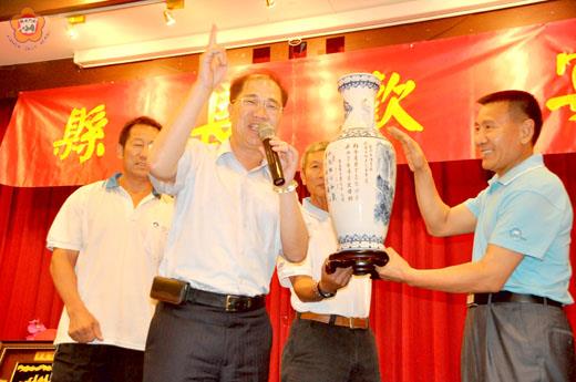 2012第四屆金廈海域泳渡│全球華人接力公開賽將於今(十五)日上午八時二十分,在小金門雙口海灘鳴槍下水,泳向大陸廈門椰風寨救生指揮中心海域上岸,爭取男、女組的錦標。在昨晚舉行的金廈海域泳渡│縣長晚宴宴會中,金門縣長李沃士代表金門鄉親熱情迎接兩岸四地泳士來到,他希望金廈海域活動一年比一年盛大,也預祝全體參賽選手創造出個人最佳成績,整個海泳賽事順利、圓滿、成功。 金廈海域泳渡│縣長晚宴宴會於昨晚六時三十分,假盈春閣舉行,由李縣長主持,行政院僑務委員會副委員長任弘、中華民國成人泳協會總會長劉建廷、大陸廈門市體育局局長余振杰,以及來自兩岸四地泳士和參與賽事人員,同聚一堂,把酒言歡,預祝金廈海泳順利舉辦和平安。 在晚宴中,李縣長首先致贈書有「創金廈體育交流榮景,居兩岸體壇歷史偉功」字樣的青花瓷瓶給廈門市體育局局長余振杰,感謝他十餘年來對於金廈兩岸體育交流的努力及貢獻。另,金門縣體育會理事長王漢志也致送書有「海峽體育舵手」字樣的匾額一方,由教育局長李再杭代表致送給余振杰,表達敬意和肯定。 今年的金廈海域泳渡競賽活動,總共有來自兩岸四地七十六隊、一百五十二位華人菁英泳士參加,經由「接力賽」挑戰全長約七公里海上長泳賽程,並於十二日在廈門市舉行金廈海泳新聞發佈會,由李縣長和廈門市人民政府辦公廳副巡視員蔡偉中共同主持,它也象徵兩岸在未來「接力合作」共創雙贏。 李縣長在歡迎晚宴致詞表示,金廈海域泳渡│全球華人接力公開賽的舉辦,展現全球華人在推動海域體育運動的成果,互相交流、彼此交朋友,也為全球華人建構一個互相學習及觀摩的平台,打造金廈海泳成知名品牌的體育賽事。 李縣長說,承蒙廈門市人民政府的共同協助和支持,才能使金廈海泳活動一年比一年更加順暢及熱絡的盛況。他指出,自去年起,金廈海泳改為競賽型活動,並親自到廈門椰風寨救生指揮中心海灘,迎接選手游上岸衝向終點站的奮戰不懈的運動精神,感到相當振奮和高興。 李縣長也高舉酒杯,與在場兩岸四地泳士把酒共祝金廈海泳賽事順利舉行和獻上祝福,他希望來自兩岸四地泳士在晚宴上,彼此交流,並在今日金廈海泳賽游出個人最好的成績,也祝賽事圓滿成功。 自2009年,金廈兩地政府共同努力下,舉辦首屆金廈海泳活動後,成為兩岸體育交流發展進程中的里程碑。今年的金廈海泳首次採用晶片計時;第一位選手游抵終點站上岸三十分鐘後,即劃下停止賽事,未游完選手全部接上警戒船帶回岸上,以維護選手的參賽安全,也將為金廈海泳寫下新的一頁。