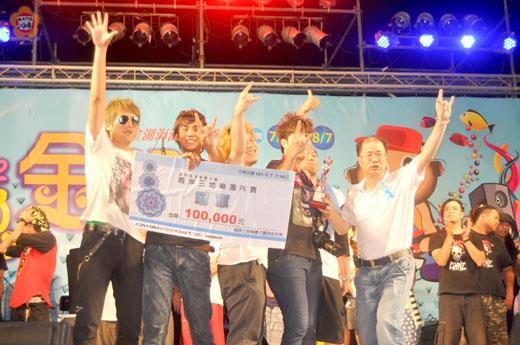 2012夏艷金門海洋風系列活動所舉辦的兩岸三地樂團PK賽,昨晚於后湖濱海公園舉辦PK決賽,入圍的六支樂團使出混身解數盡情演出,結果由GUTS樂團脫穎而出獲得冠軍寶座,縣長李沃士和鄉親一起歡唱HIGH到最高點,在頒獎表揚優勝隊伍時表示,兩岸三地樂團PK賽明年將續舉辦,並邀約台灣貢寮、墾丁知名海洋音樂祭優秀隊伍來金門表演,也歡迎今年入圍決賽的樂團明年再來。 2012夏艷金門海洋風系列活動,於七月七日及八日舉辦的樂團PK賽出賽及表演,造成后湖濱海公園大爆滿,盛況空前。昨日晚上七時起再於后湖濱海公園舉辦樂團PK決賽,入圍決賽的有Redor樂團、COMZ樂團、GUTS樂團、風鈴草 Campanula、Carousel旋轉木馬、糖果酒等六樂團輪番上陣演出,以精彩的歌聲、動人的旋律爭取評審們的青睞及現場觀眾的熱情掌聲。而主辦單位在活動中也穿插摸彩活動,縣長在抽獎後還加碼再送機票,讓活動掀起高潮。會中邀請到偶像劇『愛上巧克力』主角王子、小傑、毛弟所組成的男子偶像人氣團體『JPM』、超實力女子唱跳團體-Barbie Q等團體表演,高亢優美的歌聲讓現場民眾聽得如癡如醉,沉浸在夏日、海風、音樂的后湖海灘,HIGH翻全場,為活動掀起另一高潮。 昨晚李縣長等人也頒獎表揚績優樂團,得到單項獎項的隊伍是:最佳吉他手旋轉木馬樂團、最佳貝斯手風鈴草樂團、最佳鼓手Redor樂團、最佳鍵盤手GUTS樂團、最佳主唱Redor樂團、最佳創作COMZ樂團、最佳人氣獎糖果酒、最佳評審獎金門高職等八項。重頭戲的冠軍隊伍是GUTS樂團,亞軍Redor樂團、第三名是Carousel旋轉木馬樂團。 由金門縣政府與金湖鎮公所共同合辦的「2012夏艷金門海洋風活動~金湖海灘花蛤季」活動,以「解放、音樂、玩水、浪漫」為四大發展元素,要讓金門的夏天充滿濃濃音樂、解放海洋的驚艷。