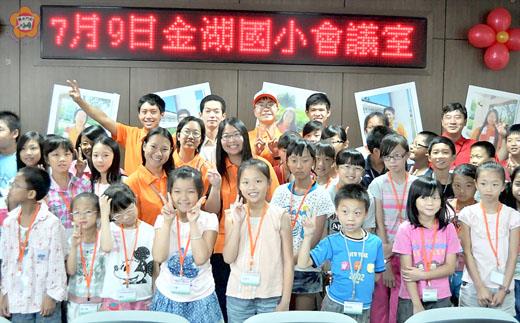 二○一二海外華裔青年英語服務營開跑,六位來自美國的華裔青年,將引導金湖國小五十位學子,展開為期十二天的英語學習活動,副縣長吳友欽勉學子,珍惜得來不易的資源,認真學習,今夏勇敢開口說英語,要「厚臉皮」不怕笑,多發問,把握機會挖寶,方能有所收穫。 二○一二海外華裔青年英語服務營自七月九日起,為期至七月二十日止,假金湖國小舉行,昨日上午舉行開幕典禮,五十位金湖國小學子參加,副縣長吳友欽對於現場十分想參加,卻苦苦等候不到候補的學生感到惋惜,並藉此勉勵五十位幸運學員,不管是不是自願參加,要能珍惜得來不易的資源,在十二天的活動中,勇於發問,不怕笑,開口說,必能有所收穫。 根據金湖國小提供的活動計劃書,該英語營的對象為各校五六年級以中低收入戶、外配子女為優先及有意學習英語之學生;有家長表示,為了孩子想學,依規定一大早到校候補,卻撲了空,讓人大失所望;為美中不足之處。 而活動中,不乏第二度參與的學員,有李姓學童表示,去年的學習印象是內容很生活化、很有趣,有別於平常課程所學。