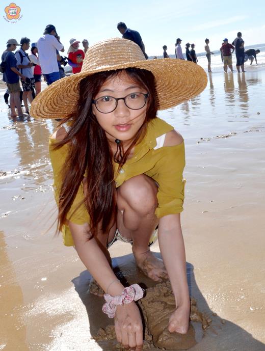 金門很好玩,花蛤隨處有! 一位來自高雄的文藻學院女學生昨天到成功海邊遊玩,她覺得金門的海邊是活的,隨手就挖得到花蛤,她還捉放了一隻大螃蟹! 她表示,臺灣的海邊沒有那麼多活生生的小動物;她希望這裡的生態能夠被保護好!